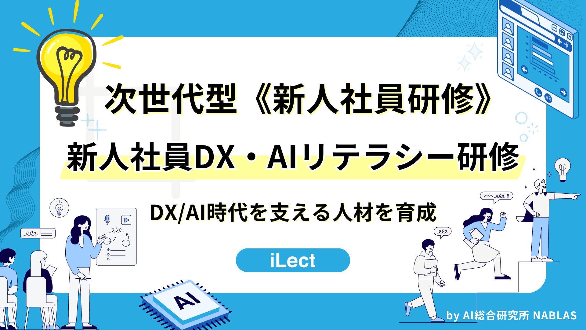 AI総合研究所として活動するNABLAS株式会社 (本社 : 東京都文京区本郷、 代表取締役 社長 : 中山 浩太郎、 以下「当社」)が提供する、実課題の解決を目的としたAI人材育成サービス iLect は、この度、新人社員DX・AIリテラシー研修の提供を開始しました。
