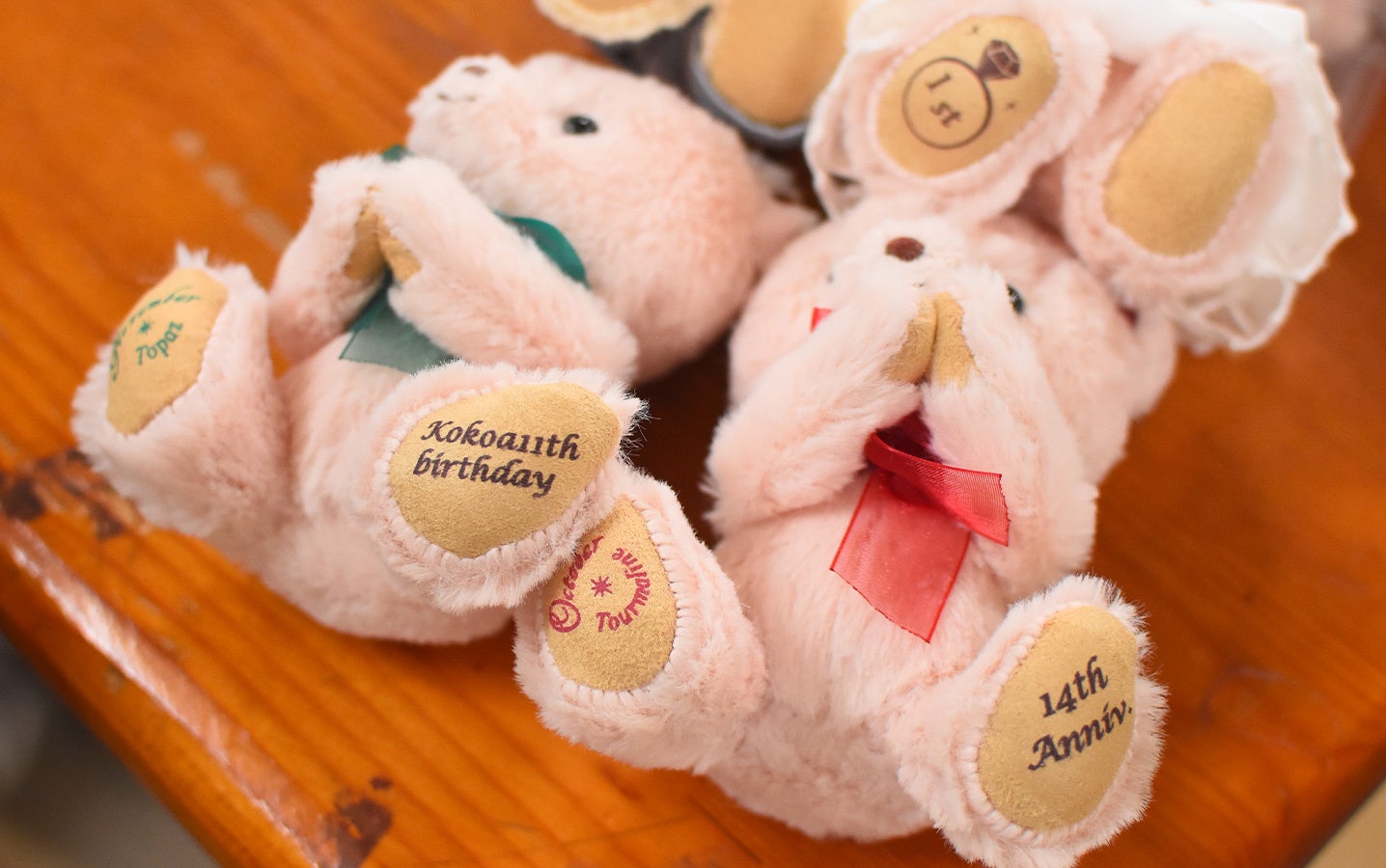 当店では、ほとんどのテディベアの足裏にお名前や記念日がプリント可能で、足裏プリントは、すべて本社にある「制作工房」で1点1点手作業で丁寧に仕上げられます。量産品にはない温かみがあり、大切な人へのプレゼントや記念品に最適です。