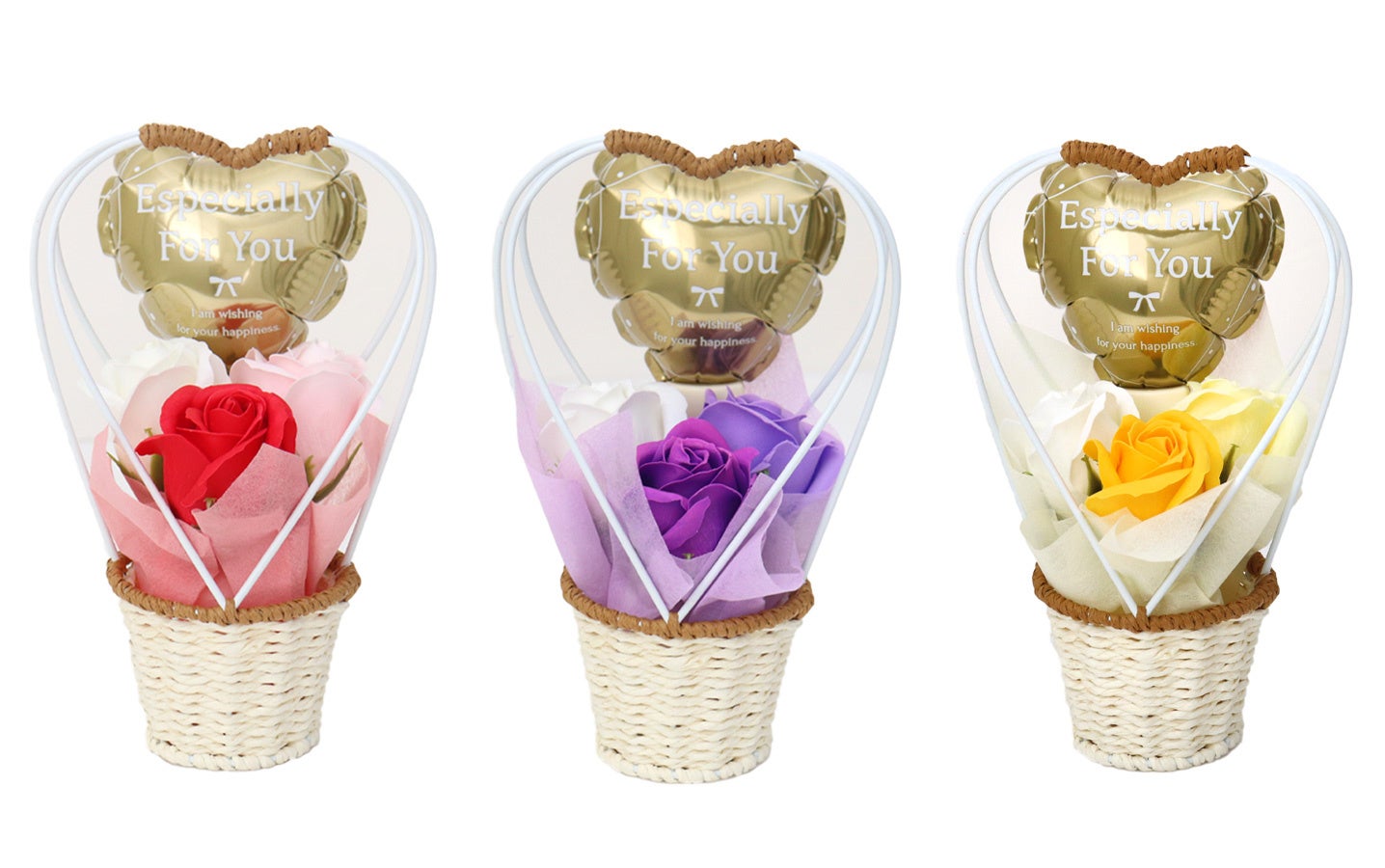 また、バスケットにはリバーシブル対応のメッセージ入りバルーンピックをセット。表面には「Especially For You」、裏面には「THANK YOU」のメッセージ入り。特別な想いを込めたギフトに仕上げました。