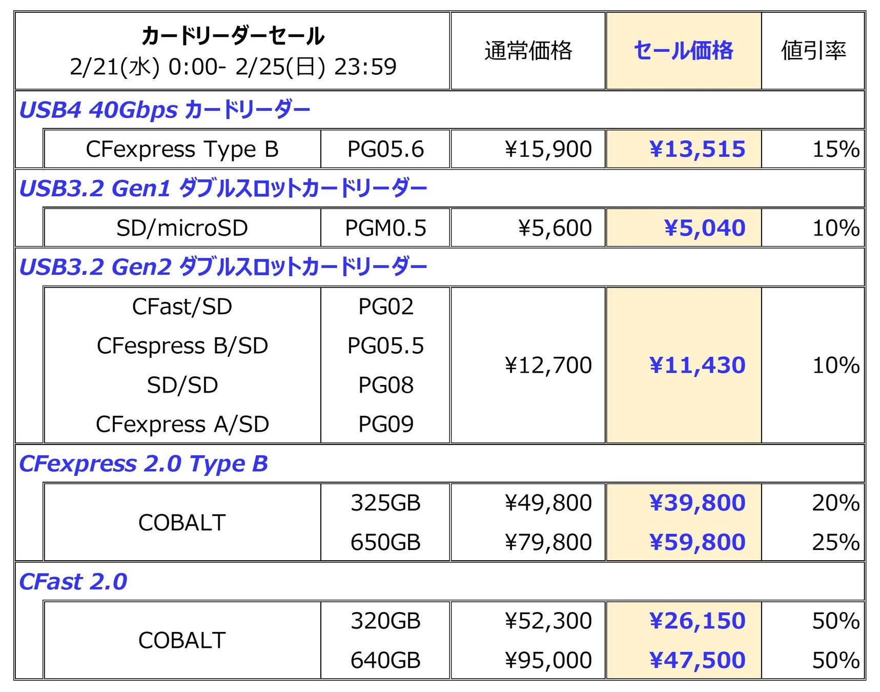 ~CFexpress Type B COBALT 325GB/650GBカードもそれぞれ20%,25%OFF~