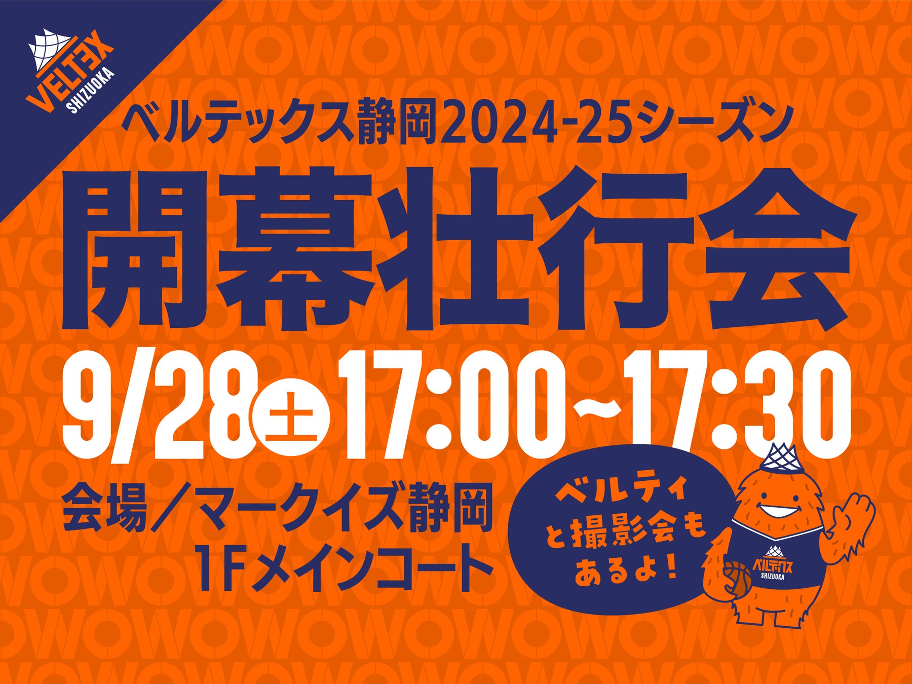 りそなグループB.LEAGUE 2024-25シーズン開幕に向け、9月28日(土) マークイズ静岡にて「ベルテックス静岡 2024-25 SEASON 開幕壮行会&ベルティ撮影会」を開催することが決定しましたのでお知らせいたします。