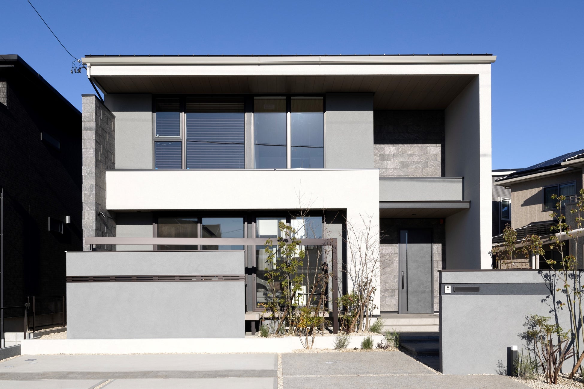 (5)スクエアでシャープな外観デザインに、庇計画を取り入れ、意匠性とパッシブデザインを両立