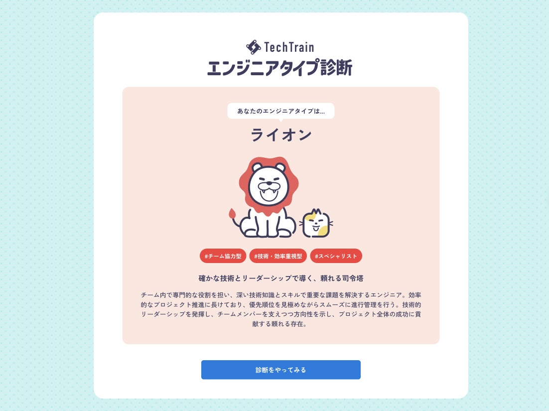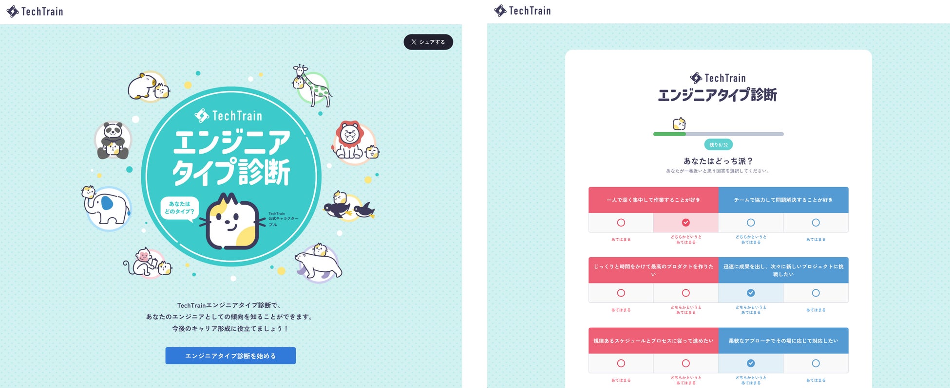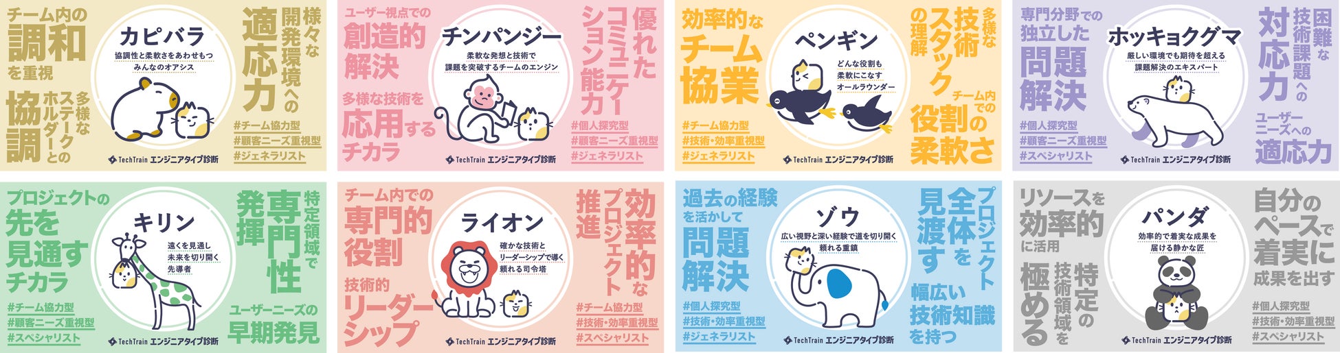 あなたはどのタイプ?TechTrainが「エンジニアタイプ診断」を公開。強みや適性を8種類の動物で診断
