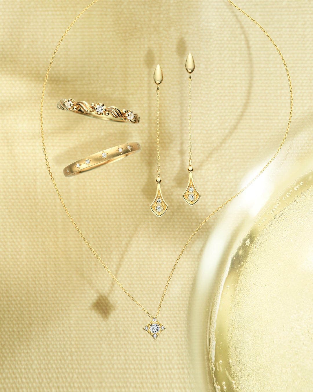 「幸せ」という意味が込められているシャンパンの泡を表現したジュエリーは、お守りのように身につけていたいアイテムです。