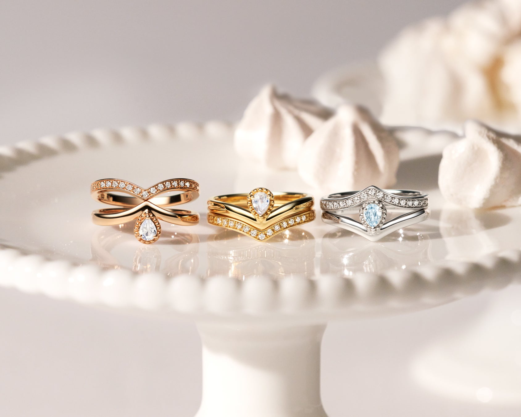 パティシエがひと皿ずつ丁寧に仕上げる特別なデザートをイメージしたロマンティックなジュエリーです。