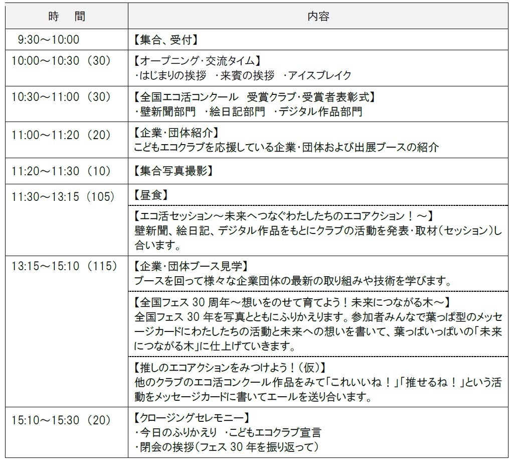 公益財団法人日本環境協会(こどもエコクラブ全国事務局)は、弊協会主催の「全国エコ活コンクール」にて有識者による審査で選抜された都道府県代表クラブ等(別添: 参加クラブ一覧)が集まり、それぞれの活動発表などを通して交流を深める「全国フェスティバル」を開催します。