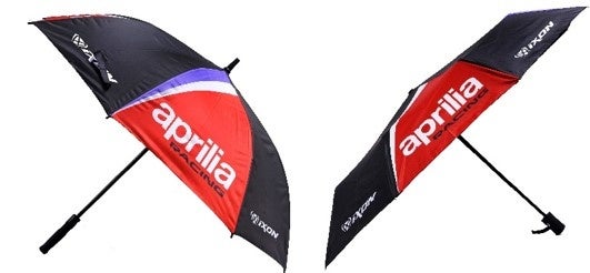 2022年シーズンのMotoGPを戦うアプリリアレーシングのチームウェアコレクションは、新たにレディースチームウェアやサイズの異なる2種類のアンブレラ、バックパック等の新作を追加しています。本年モデルのMotoGPマシンのグラフィックデザインを反映し、ブラックベースで肩から袖にかけてはスポンサーロゴを、肩や腰などには伝統の蛍光レッドとパープルのアクセントカラーを施したデザインです。