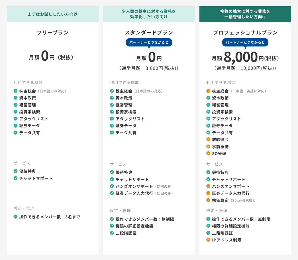 SO管理smartroundは、スタートアップ向けのプロフェッショナルプランにてご利用いただけます。