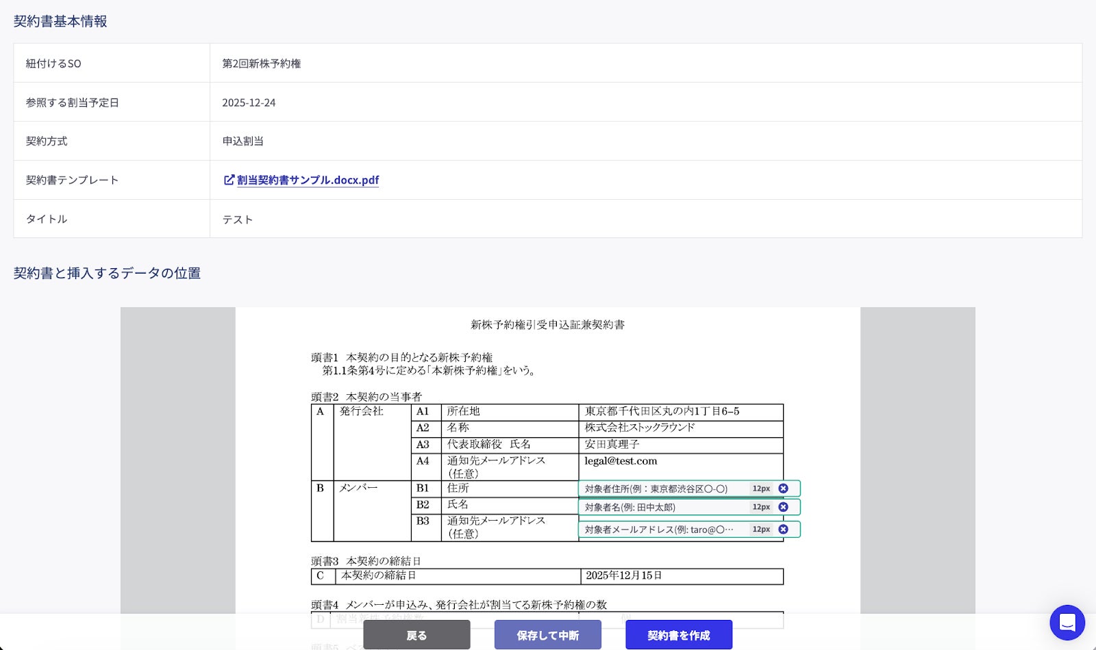 1. ストックオプションの発行・割当時の契約書作成を自動化