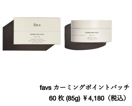 株式会社ダイヤコーポレーション(所在地:東京都渋谷区)は、山中美智子によるスキンケアブランド〈favs〉から、自身の経験、培った知見にもとづいて開発したカーミングポイントパッチ(ポイント用シートマスク)とアイローラーを2022年2月2日(水)に伊勢丹新宿店にて先行発売いたします。
