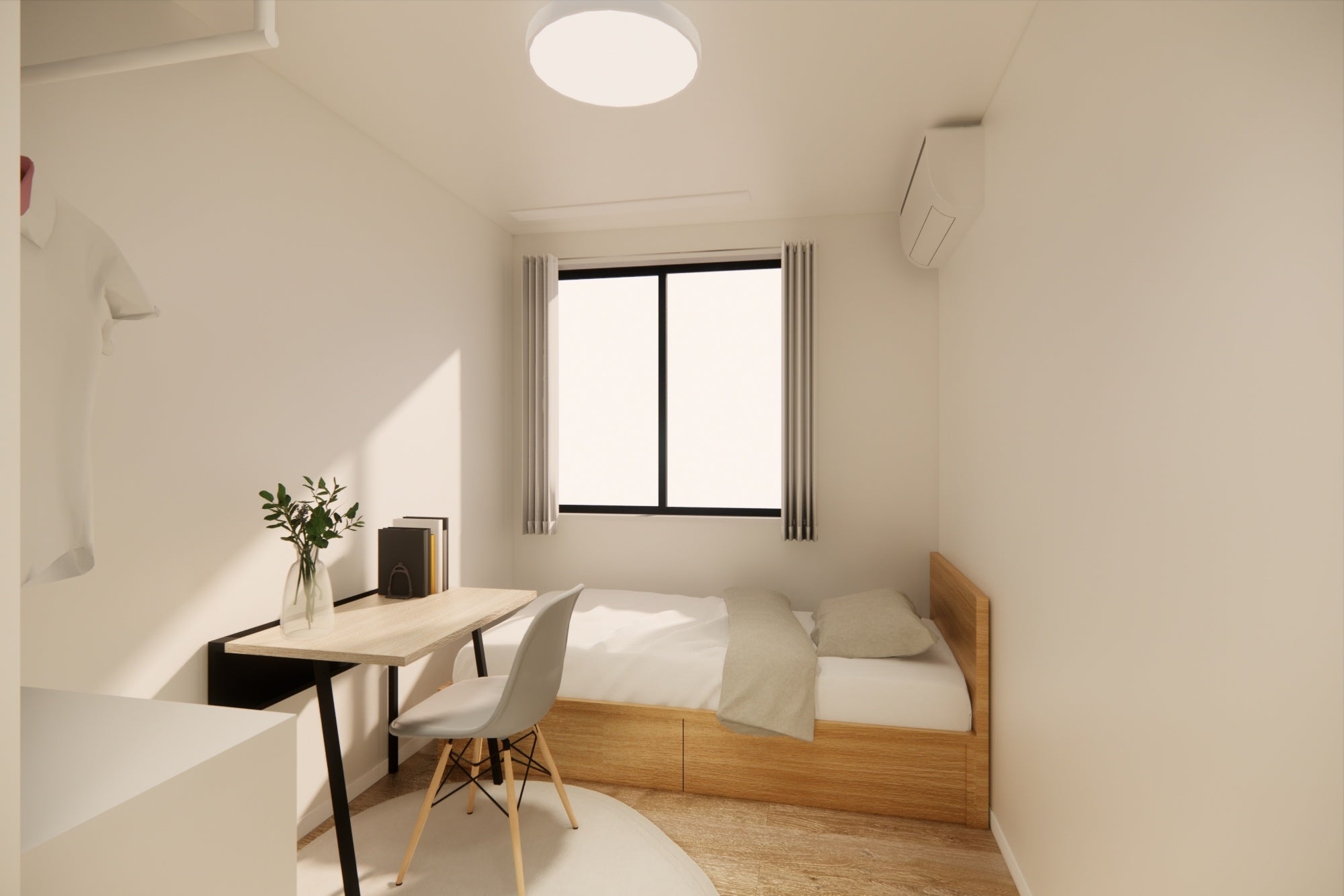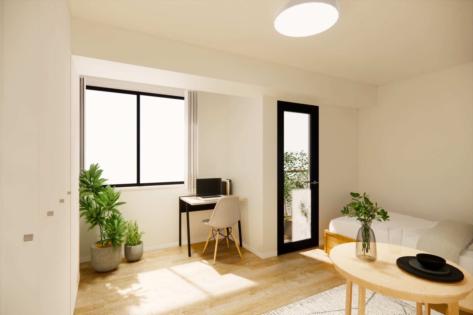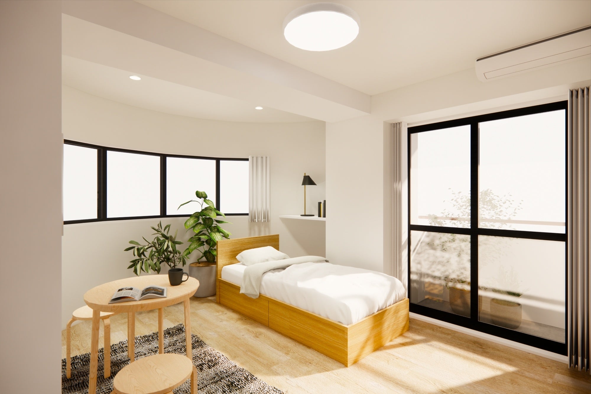 人とシェアする時間だけでなく、自分と向き合う時間も大切にしたい方向けに、居室として1Rのプライベート空間を確保。居室にはトイレ・シャワー・キッチンが用意されています。