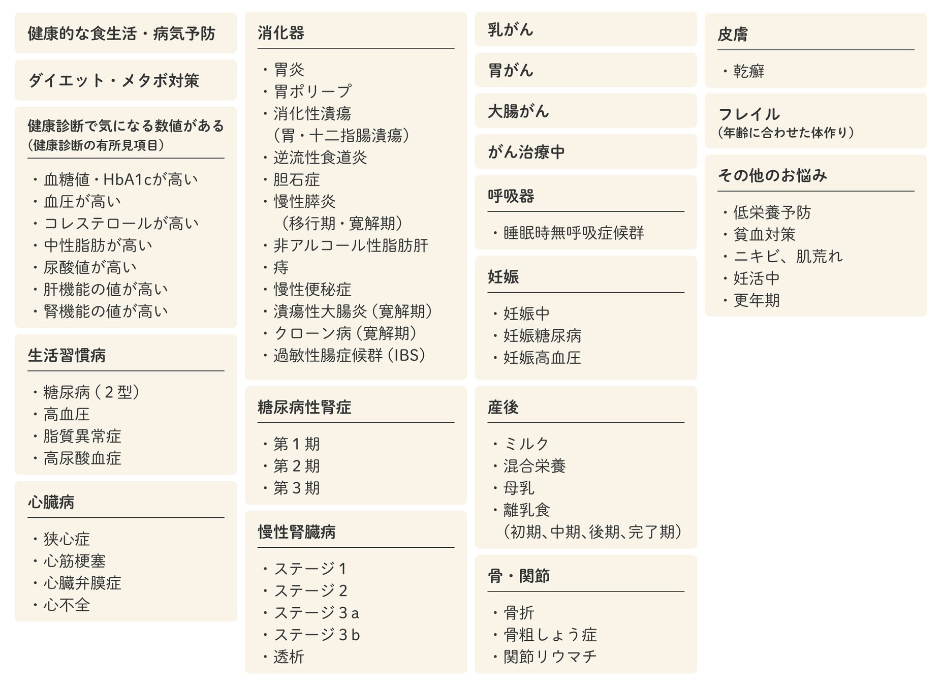 さまざまな食事制限のある患者さんとそのご家族にとって、毎日の献立づくり・栄養管理は大きな負担であり、多くの方が医療機関や薬局において食事の相談を希望しております。その一方で、医療機関や薬局がこれら患者さんのご家庭での毎日の食事までをサポートするのは、体制や費用面において実現し難いという現状がありました。