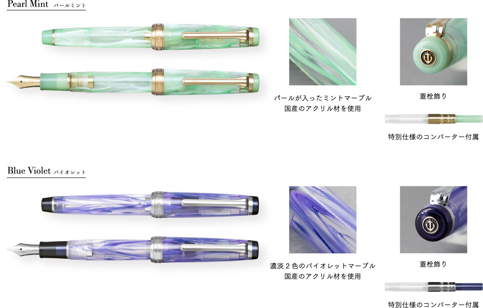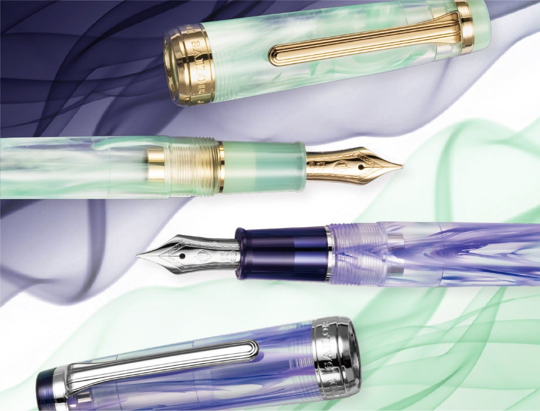 透明の中に流れるマーブル色の隙間から、インクや内部部品が垣間見える様子は清らかかつ艶やかな美しさ。