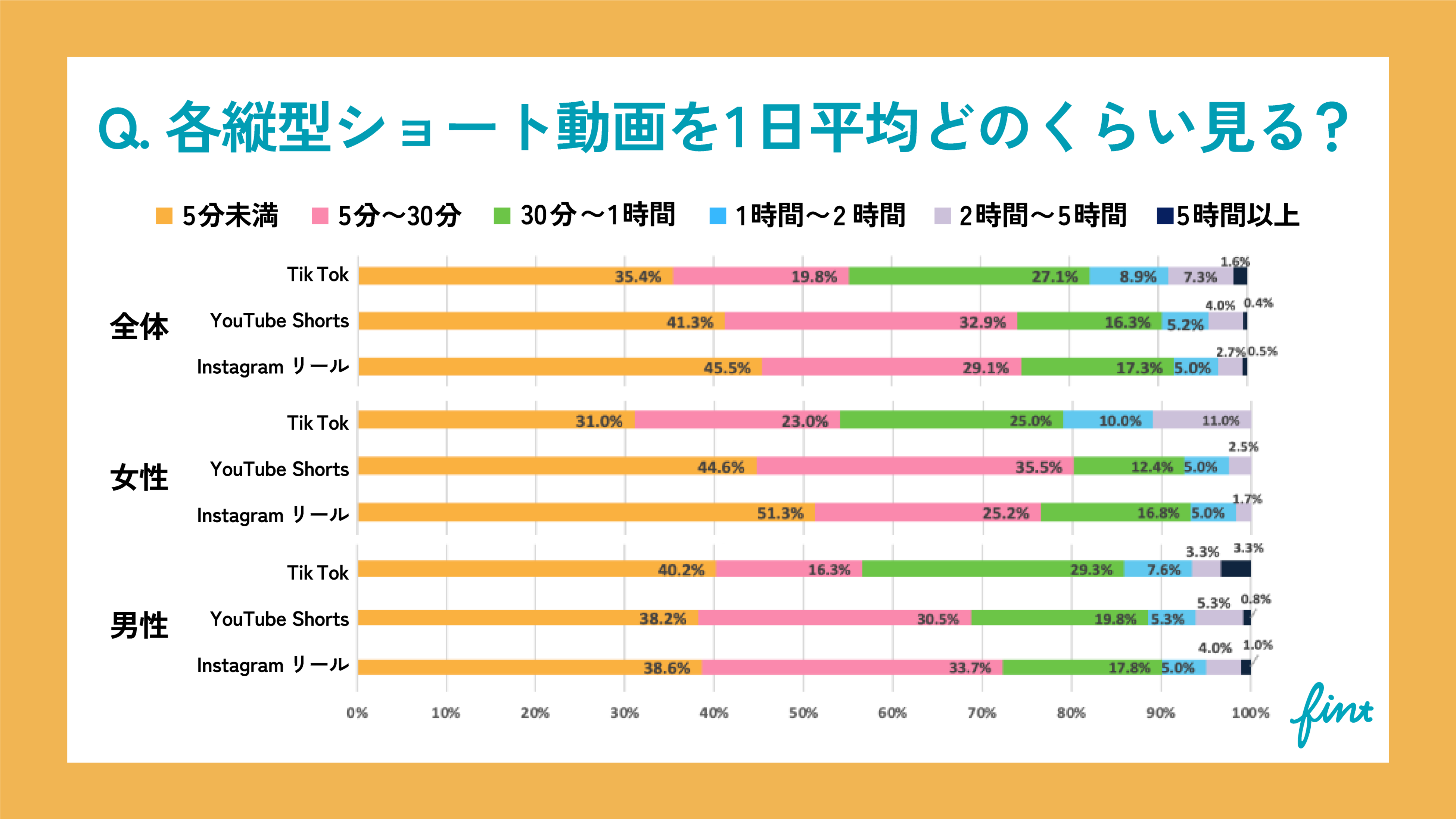 - 各縦型ショート動画を1日平均どのくらい見る?