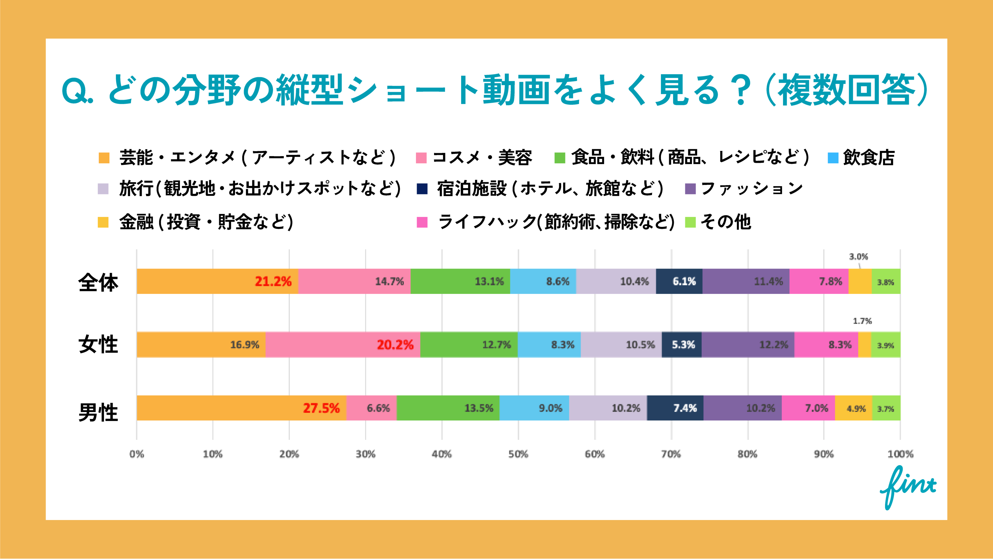 【若年層350名を対象】縦型動画に関する調査を公開!縦型動画を見て購買行動する分野、女性1位はコスメ・美容。男性1位は芸能・エンタメ。