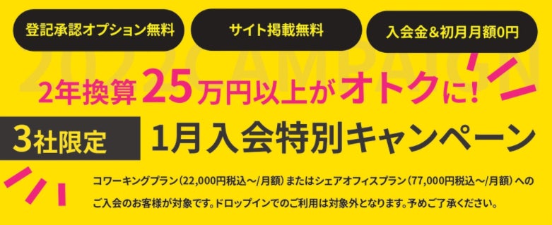 2022年1月は、みなとみらいを拠点に事業を展開していきたい事業者支援を目的として、限定3社で下記の特典付きキャンペーンを実施します。