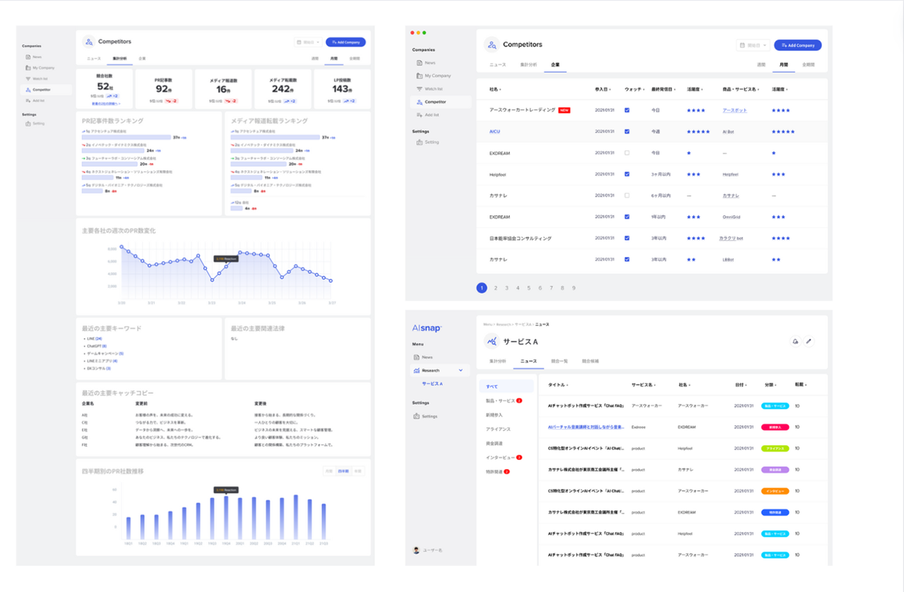 AIsnapはこうした課題を解決するため、生成AIを活用して自社のポジションを可視化し、迅速な意思決定を可能にします。近日中に新たなアップデートを予定していますので、企業の戦略策定の必須ツールとしてお役立ていただけると幸いです。」