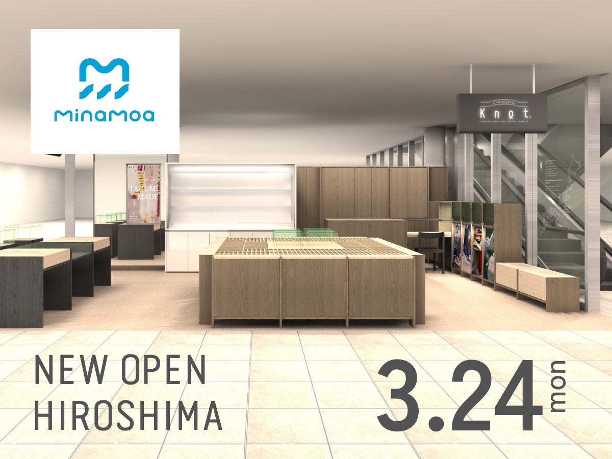 ミナモアは“人”と“街”を徹底的に知ることから生まれた“広島ならでは”のショッピングセンターをコンセプトに、ファッション、ライフスタイル、レストラン・カフェなど200店舗以上が出店する広島駅直結の大型複合施設です。Knotは中国地方初出店。広島からジャパン・クオリティを世界に向けて発信します。