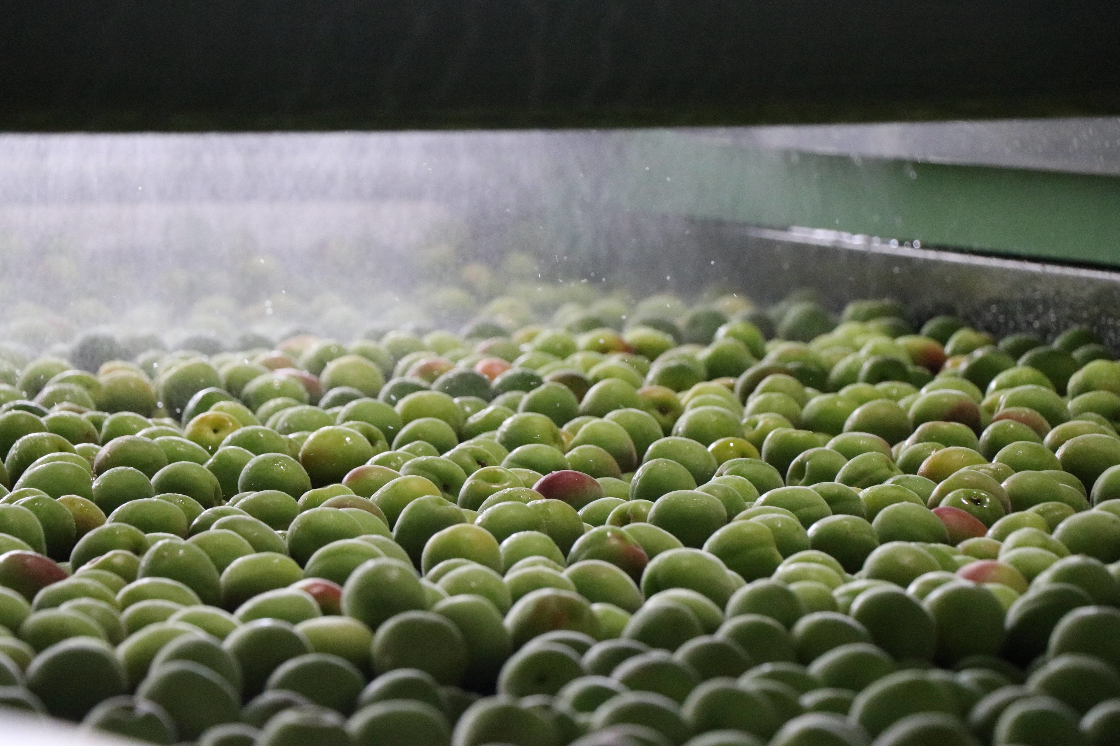 生産者によって手摘みされた梅はJAを通して入荷し、洗浄後、最大容量10万リットルの熟成タンクに漬け込みます。「光」「熱」「空気」など外部からの影響を極力受けないように設計された特注の熟成タンクは伊賀上野工場、紀州工場、大阪川向工場合わせて446基あり、梅の産地や品種、熟度ごとに管理し、おおよそ1年以上の期間じっくりと熟成させます。