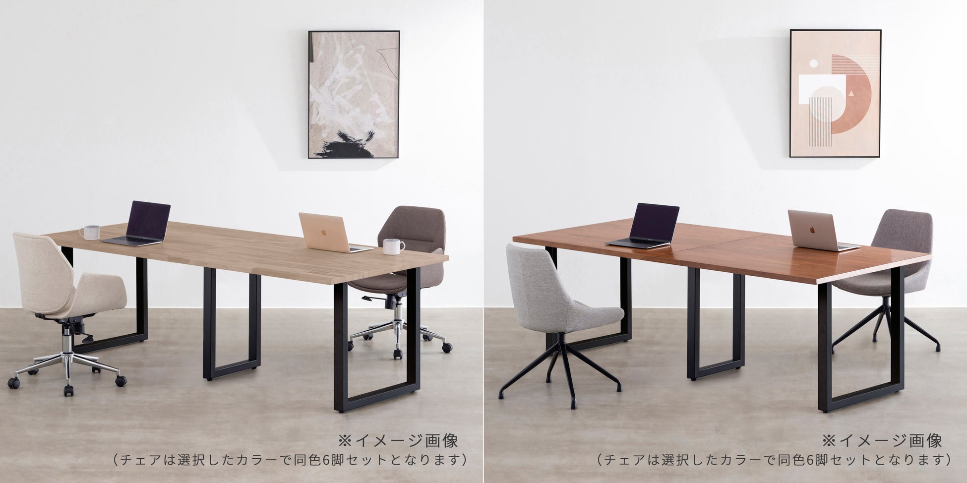 大型デスクと厳選したチェアを組み合わせたミーティングテーブルセット。取り入れやすい素材や色味をセレクトし、単品購入よりもお得な価格で提供することで洗練されたオフィス空間をより身近に。