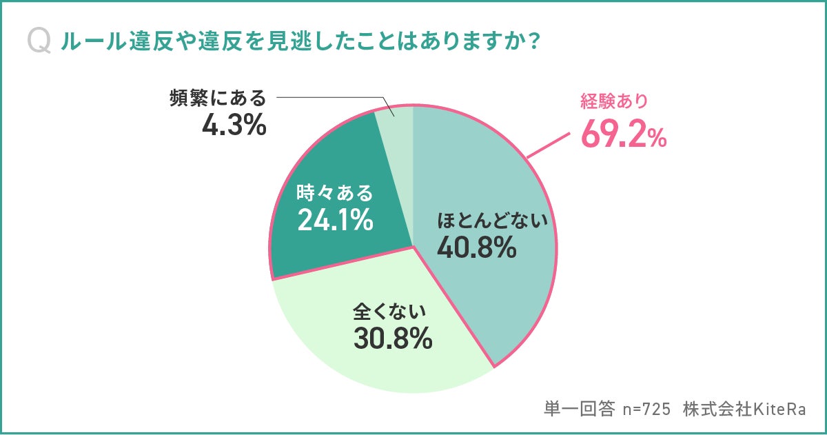 約7割(69.2%)の従業員が、仕事の多忙さやプレッシャーを感じる状況下で、ルール違反をした経験、もしくは見逃した経験を持っていることが判明しました。