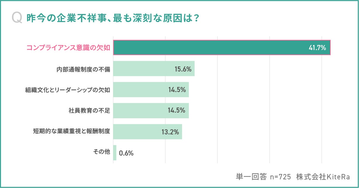 最も深刻な問題は「コンプライアンス意識の欠如」にあると考えているのは41.7%