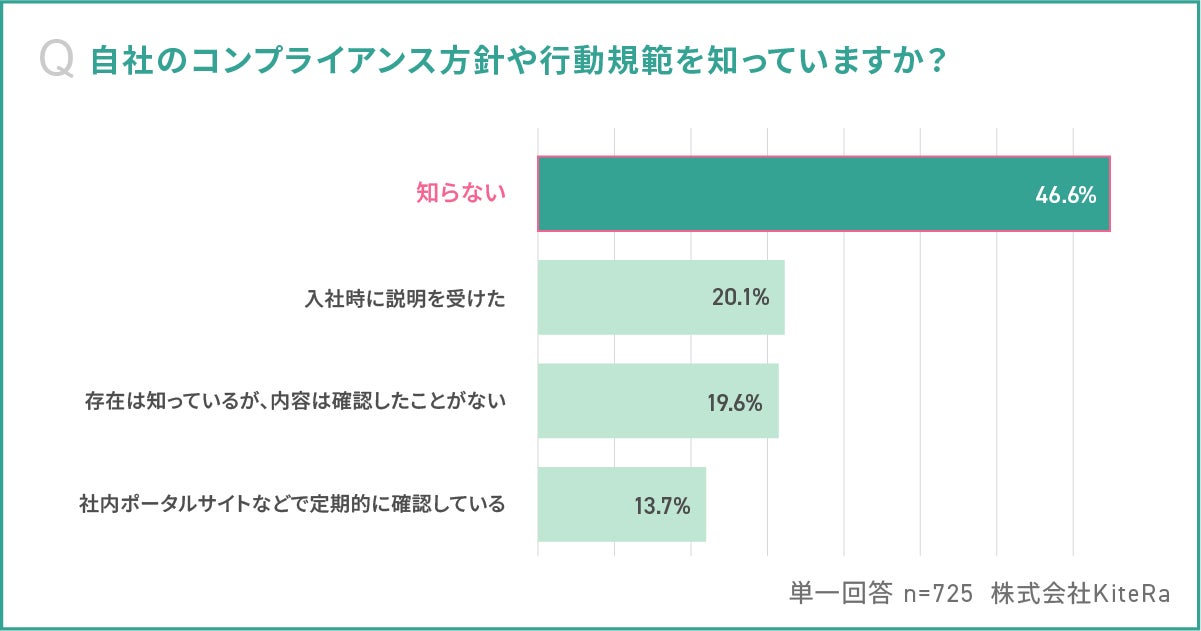46.6%から、自社のコンプライアンス方針や行動規範を「知らない」との声