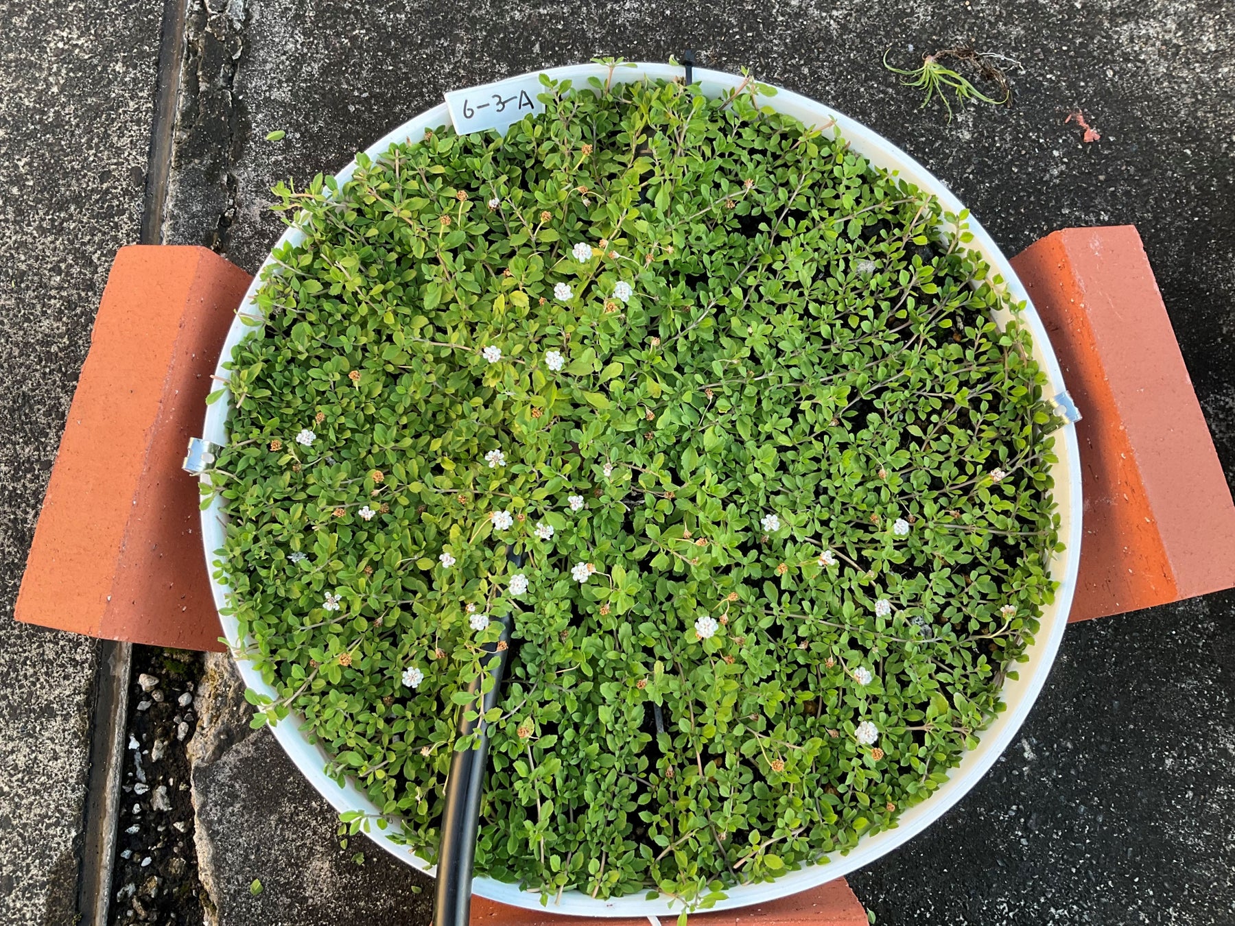 肥料配合比率を変えた19種類の実験用培養土を入れたプランターに緑化植物「クラピア」(以下、実験対象植物)を植栽し、実験対象植物の植被率(一定面積における植物が占める面積の割合であり、緑化判定に用いられる指標)を定期的に測定し、2回越夏させます。今般、1回目の越夏が終わり、複数の実験用培養土の植被率が、既存培養土と同等であったことが認められました。今後、2回目の越夏を目指して引き続き本実証実験を進めます。