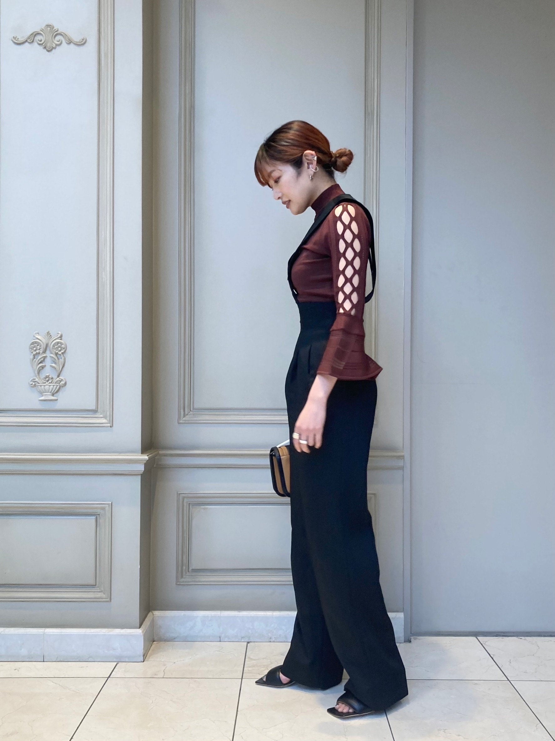 肌が覗く繊細な袖と、首のラインに綺麗に沿うハイネックのバランスが美しいアイテム。