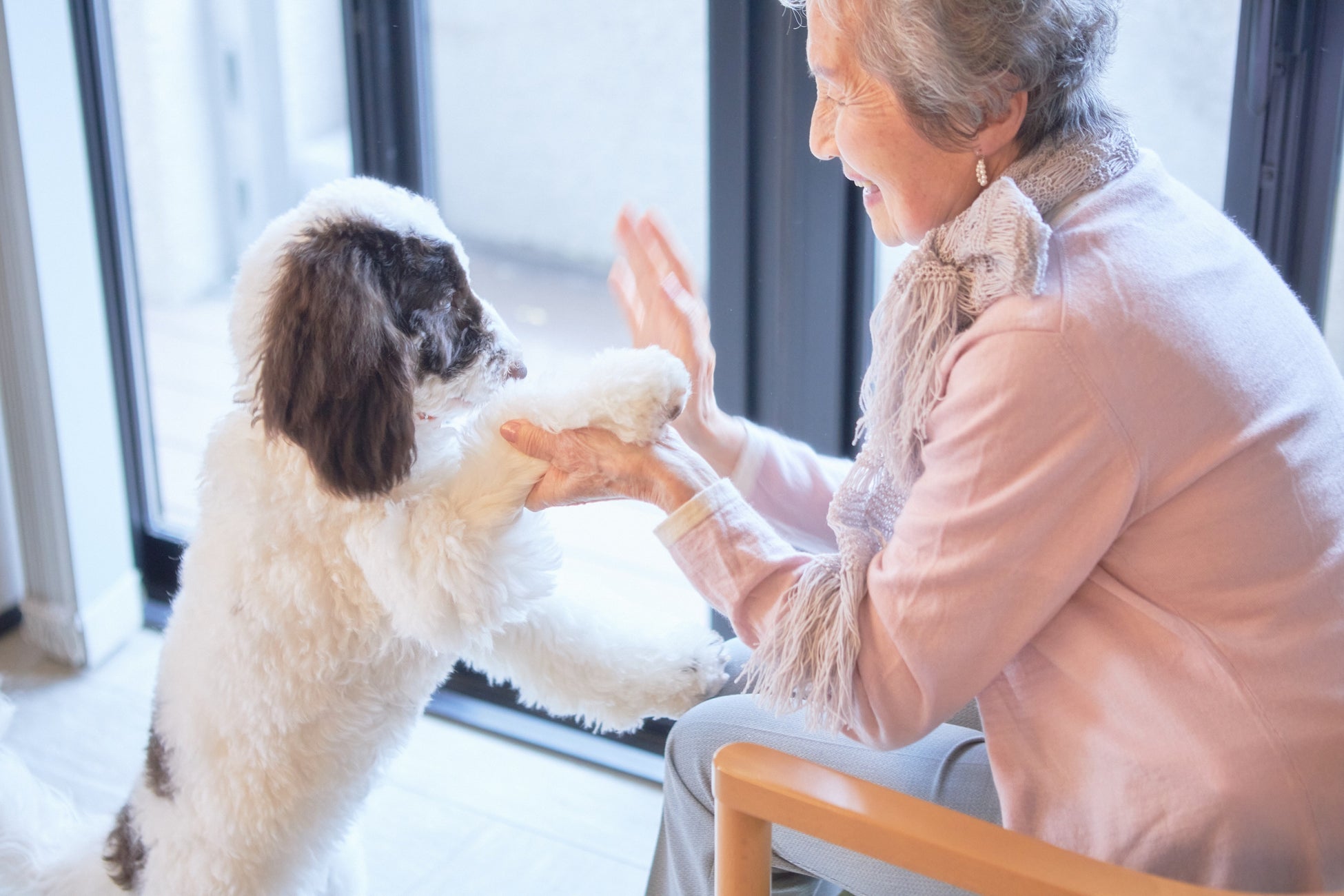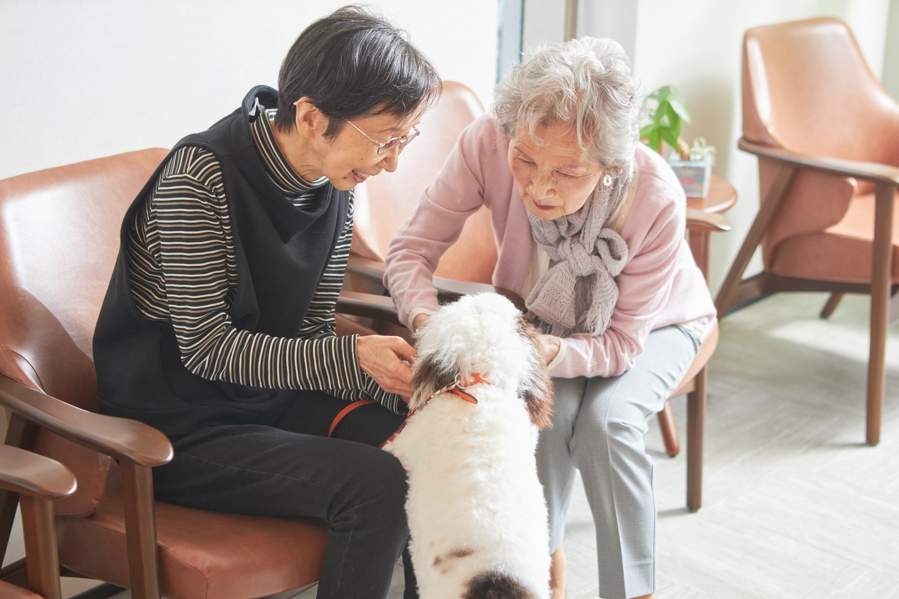 セラピー犬との触れ合いを通し「ストレスの軽減」「抑うつ症状や認知症の改善」「免疫力の向上」「コミュニケーション力の促進」などが期待できます。