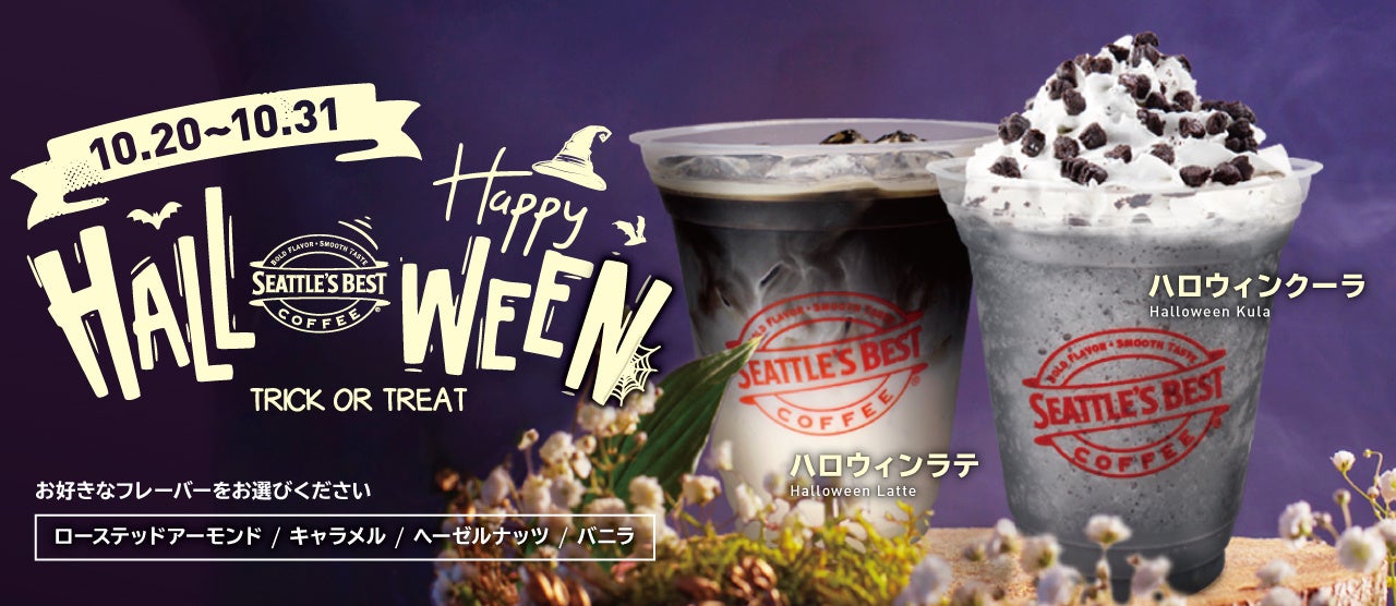 シアトルズベストコーヒーが新商品「ハロウィンラテ」と「ハロウィンクーラ」を10月20日から31日まで限定販売!