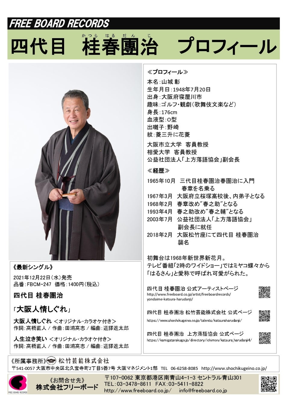 四代目 桂春團治 公式アーティストページ (http://www.freeboard.co.jp/artist/freeboardrecords/yondaime-katsura-harudanji/)