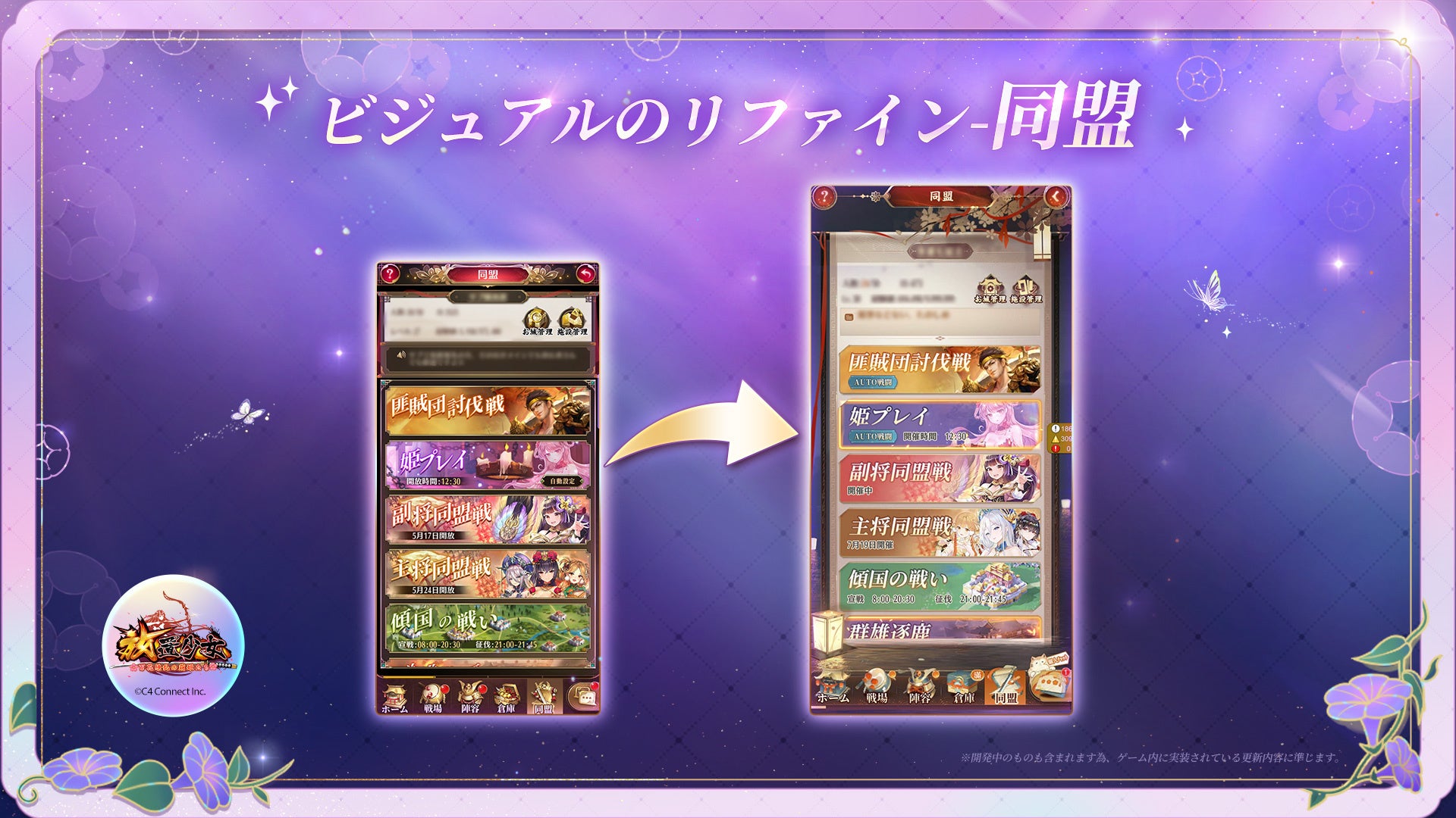 UIの透過性やアイコンのサイズが調整され、副将や背景の表示範囲が増大します。