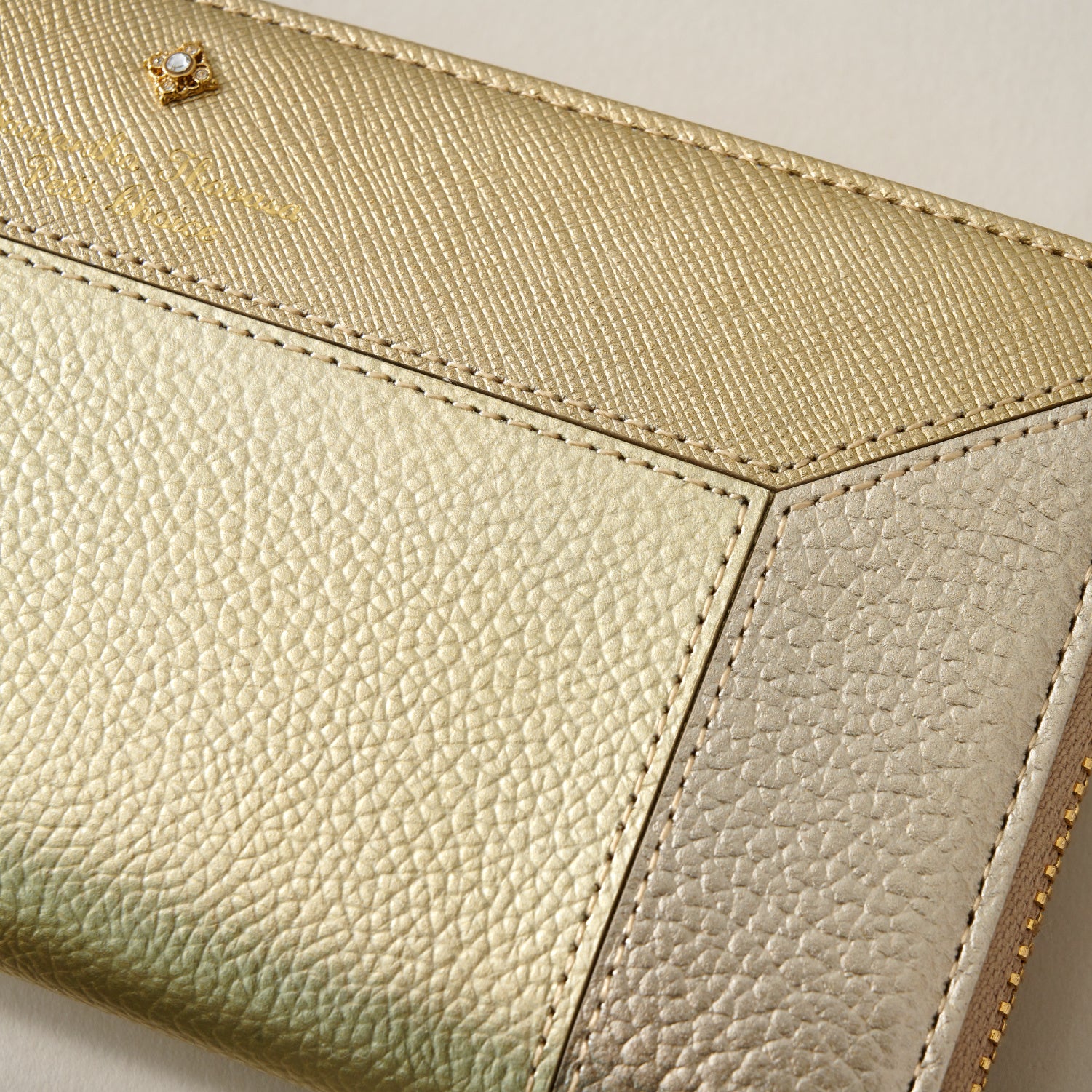 幸運を呼び込んでくれそうなゴールドとシルバーの2色展開。アイテムはラウンドジップ長財布と口金折財布の2型展開となり、計4アイテムがラインナップ。