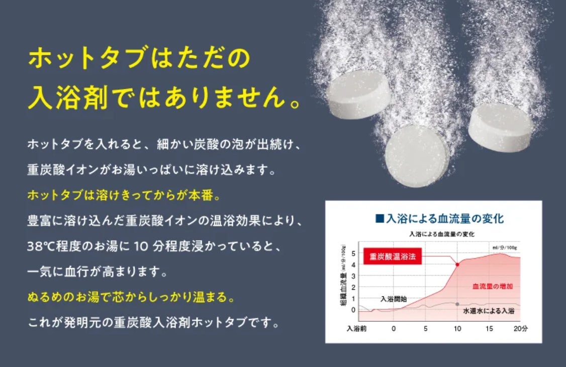 ホットタブはただの入浴剤ではありません。30分の入浴で体感してください。健康を守るオールインワン多機能入浴剤です。