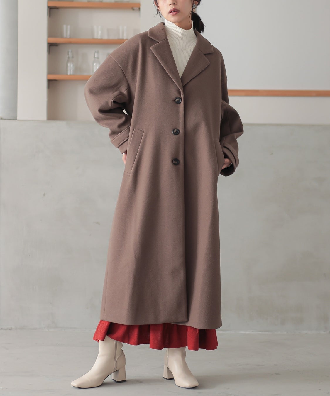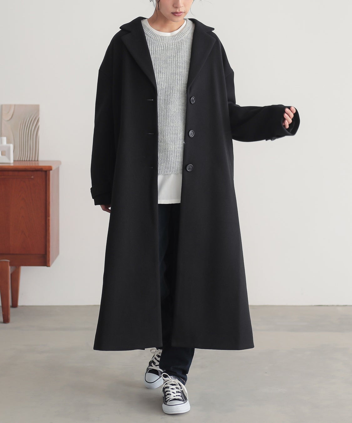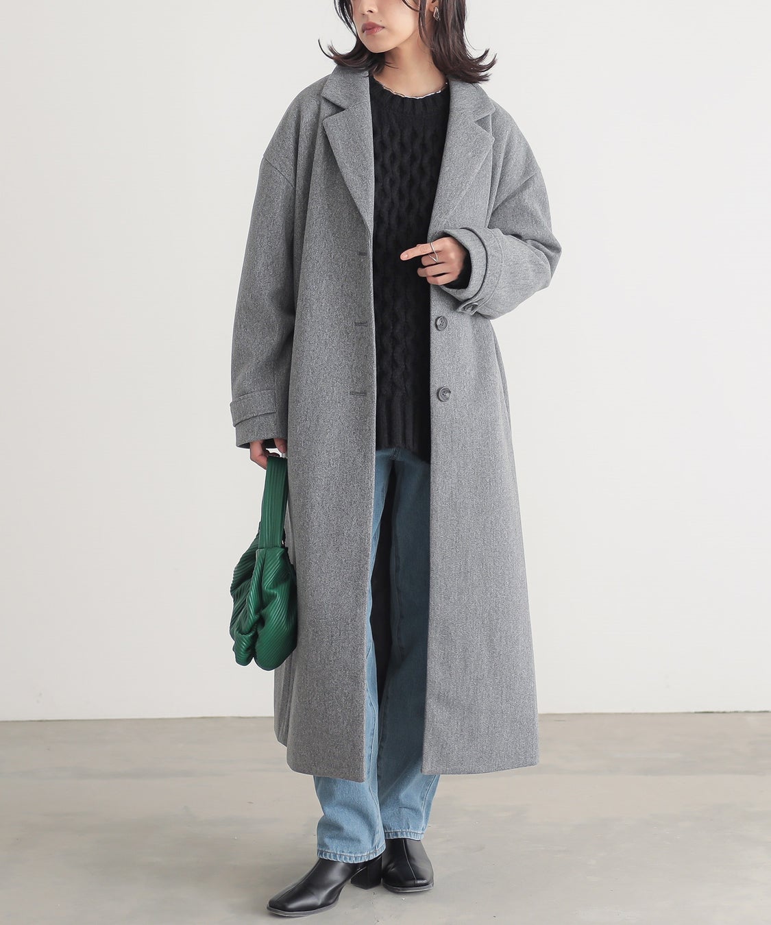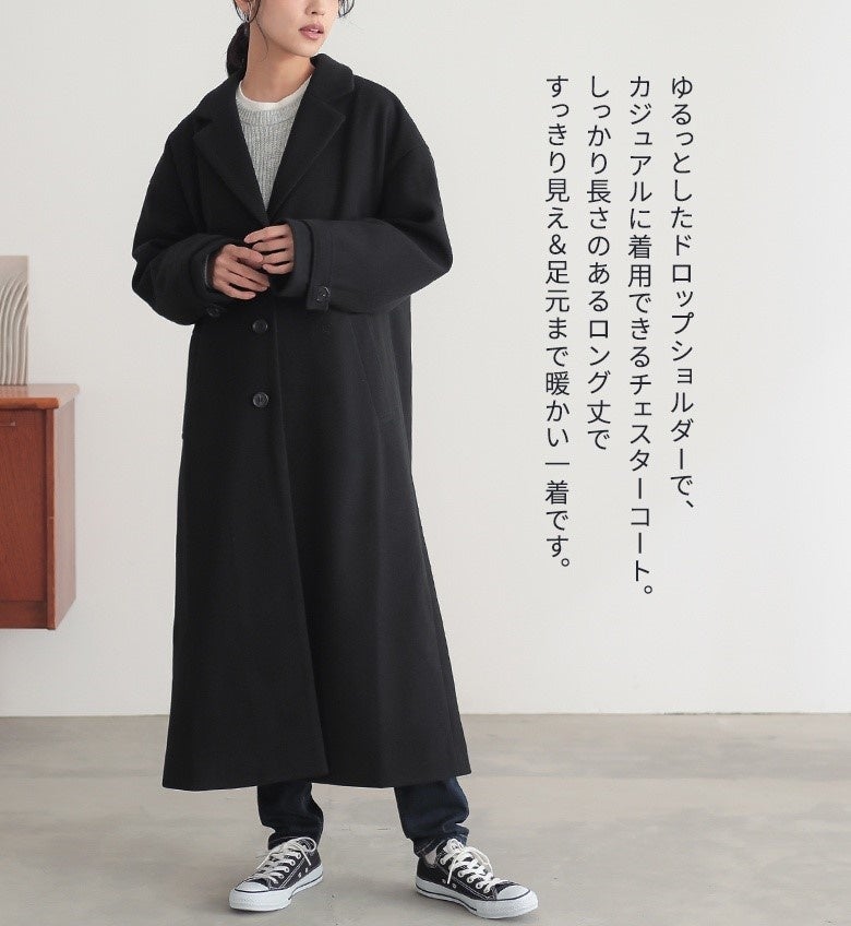 足元まで暖かいロングチェスターコート。すっきり見え&重すぎない軽めの生地感なので、冬のおしゃれを軽やかにしてくれる一着です。