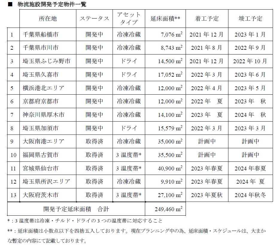 ■ 物流施設開発予定物件一覧