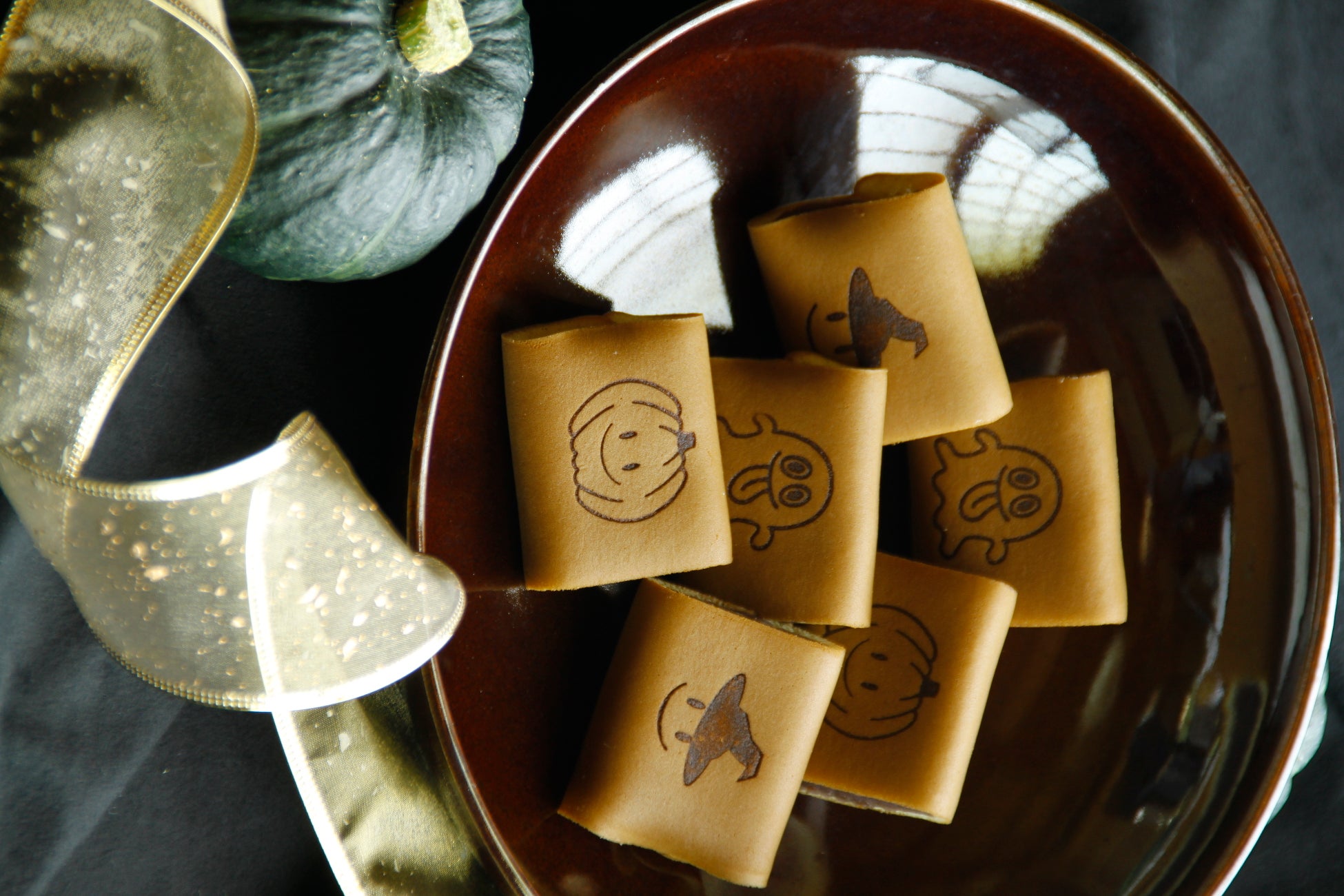 六本木ヒルズ ノースタワーB1F「菓子の記録帖」には、老舗菓子店の人気和菓子がハロウィン仕様で登場。島根県津和野町の老舗「三松堂」からは、ハロウィン仕様の「笑小巻」、ハロウィン小巻をご用意。かぼちゃ、おばけ、魔女の絵柄でハロウィン気分を盛り上げます。また、明治7年創業の島根県松江市の老舗「彩雲堂」からは、可愛らしいハロウィンかぼちゃの形をした和菓子かぼちゃ上用が登場します。
