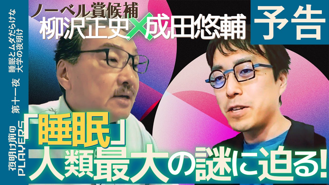 ノーベル賞候補の睡眠学者・柳沢正史氏と成田悠輔が『夜明け前のPLAYERS』で初対談!公式YouTubeで前編動画を11/27(月)に公開