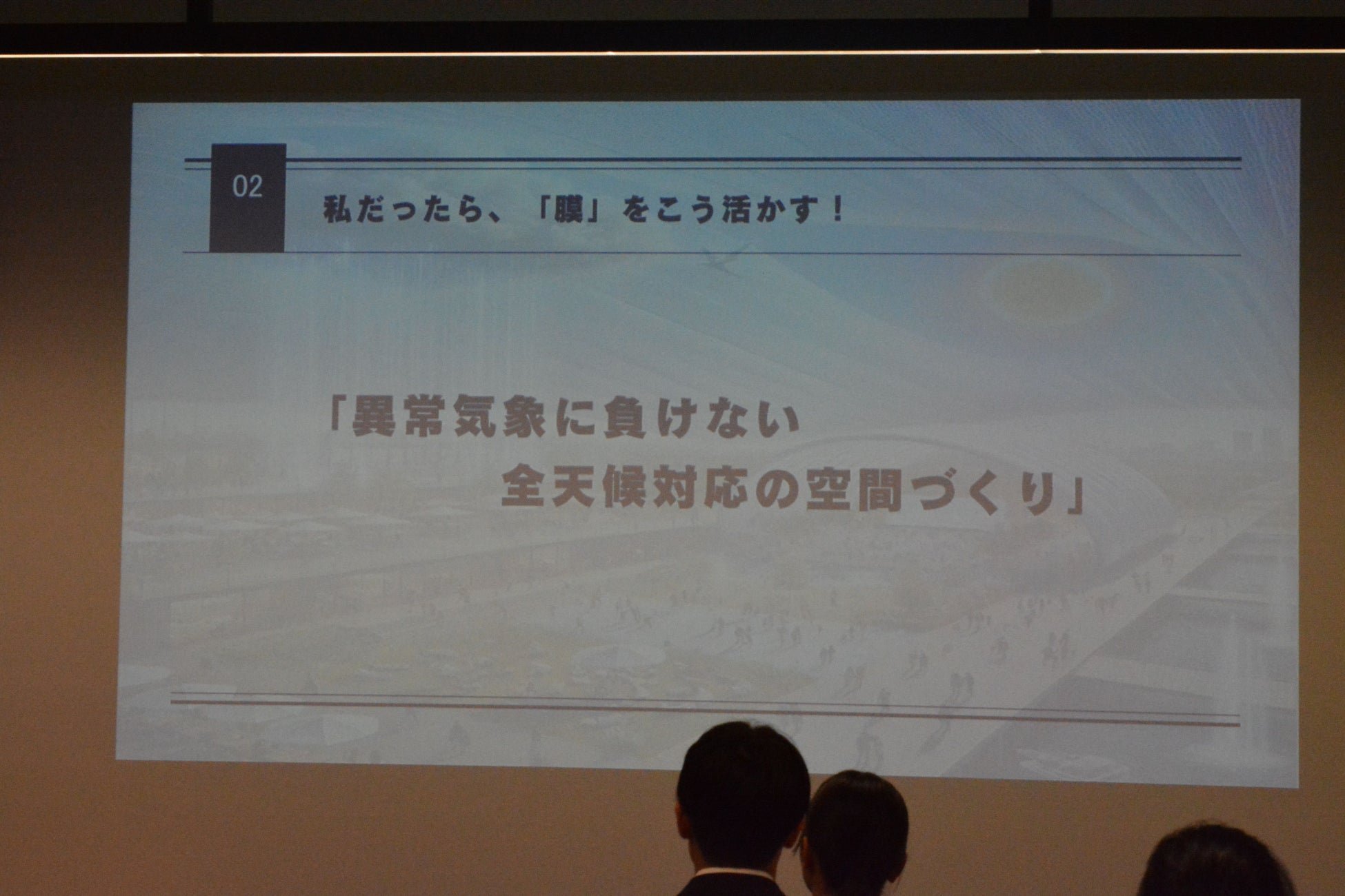 また、私たちはひとり一人が唯一無二の個性を持っています。得意なこともあれば不得意なこともあり、自分の未熟さに不安になることもあると思います。しかし、この未熟さを若さゆえのパワーとし、太陽工業に新しい価値を創造していけるよう、協力し合っていきたいです。さらに、膜の無限の可能性を広げ続けられるよう、私たちも成長し続け、貢献できる存在でありたいと考えています。
