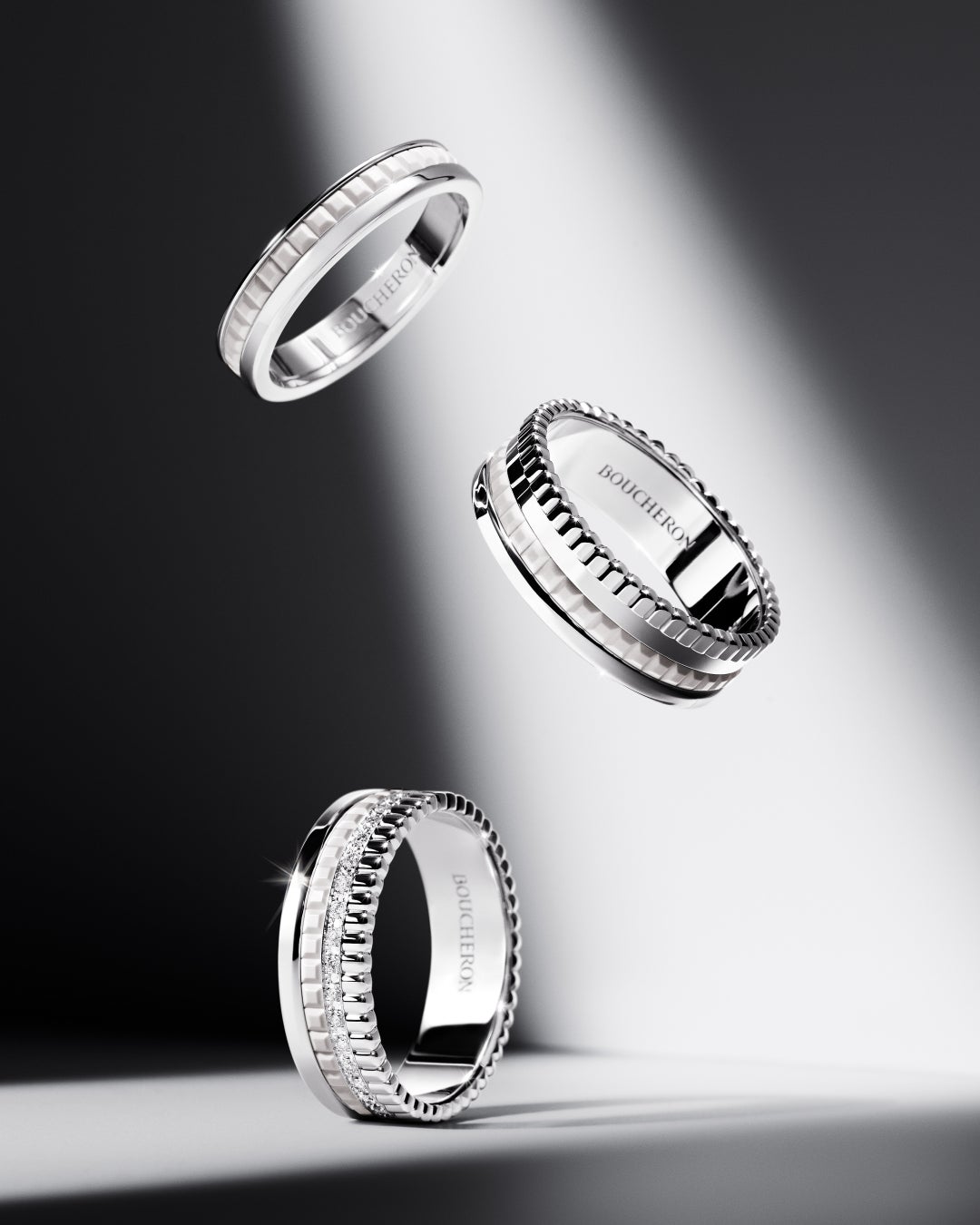 2023年3月、ブシュロンは、新作「キャトル ダブルホワイト」を発表いたします。キャトルを構成するコードのすべてをホワイトで彩ったクリエイション。ホワイトゴールドの彫刻が美しさを引き立てるグログランとゴドロンに、透明感のあるホワイトセラミックのクル ド パリを重ね、まばゆい輝きを放つダイヤモンドのラインをアクセントにしたデザインです。リング、イヤリング、ネックレスに加え、アイコニックで大胆なヘアアクセサリーが揃います。新作キャトル ダブルホワイトは、身に着ける人のスタイルを際立たせる白いキャンバスのように、ホワイトのモノクロームの力強さを放つジュエリーです。
