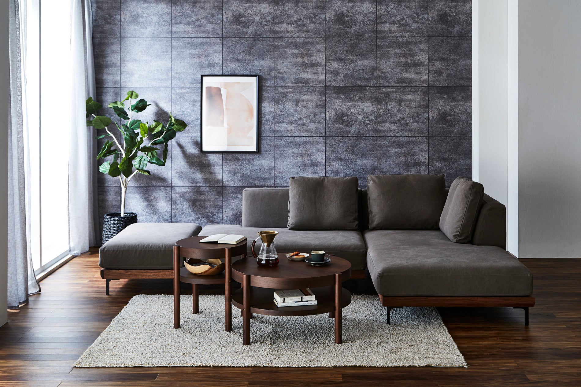 センターテーブル、サイドテーブルというアイテム展開ですが、セットでもちいることもおすすめできます。高さが変わることで、立体的な印象が生まれデザイン性が高まります。