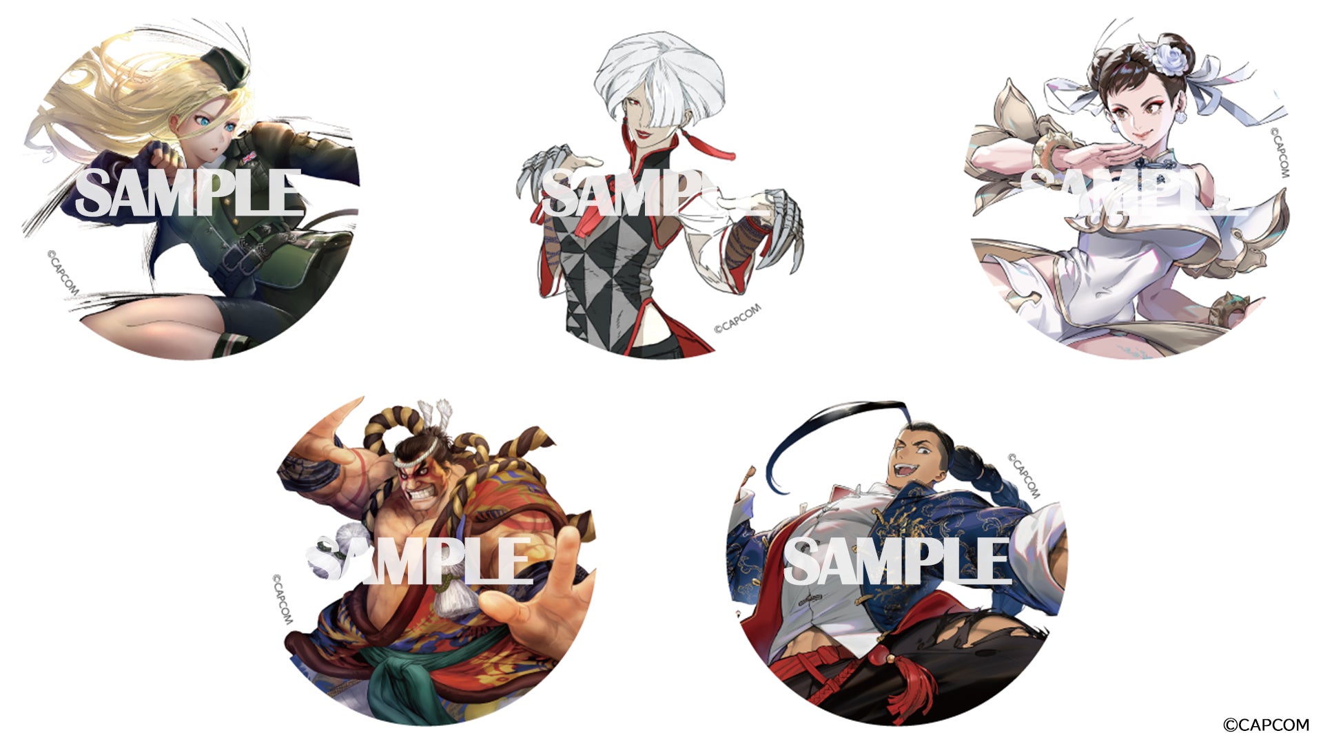 本大会の開催を記念し、『ストリートファイター6』に登場する5つのキャラクターを豪華イラストレーター陣に描き下ろしていただきました。さらにA.K.I(MID氏作)、春麗(碧 風羽氏作)、エドモンド本田(三好載克氏作)、キャミィ(百瀬寿氏作)ジェイミー(Ryota-H氏作)のオリジナルイラストを用いて、オリジナルグッズを本大会会場内限定で販売いたします。会場へお越しのお客様はぜひこの機会にお買い求めください。