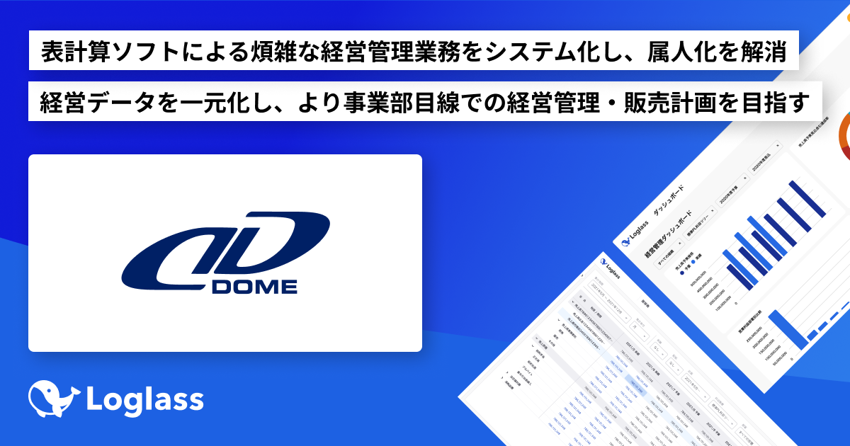 今後は、経営データをLoglass内に一元化し、部門別/店舗別/全社までの予実分析を行ったり、マーケティングKPIと絡めた分析を行うことで、より事業部に近い目線で経営管理・販売計画を行っていくことを目指しています。当社は、ドームのよりよい経営管理体制の構築を引き続きサポートしてまいります。