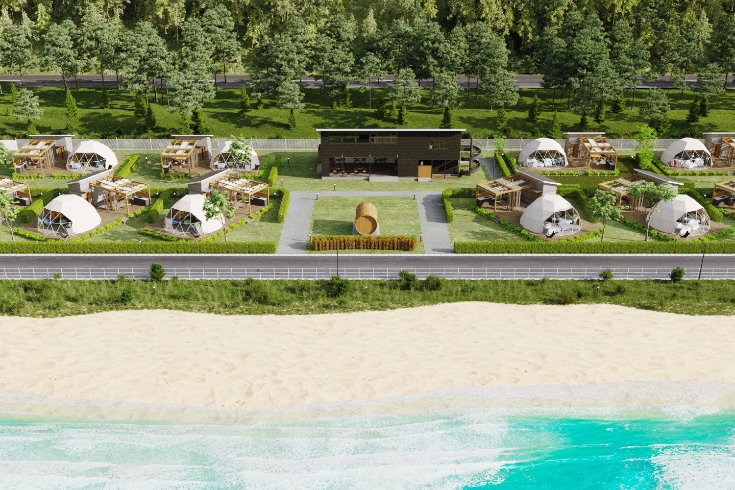都心部より約2時間とアクセス良好な茨城県・大洗に誕生する全10棟のドーム型テントを配した「グランマーレ茨城大洗」。太平洋を見渡す大洗のビーチは茨城県屈指のレジャースポット。自然に囲まれた解放感のある場所で、共有プールでの水遊びやグランピングBBQ、夜を彩るBARスペース、貸切風呂や5月からは大人気のアウトドアサウナなど、非日常の体験を満喫できます。喧騒から離れ、波音を聴きながらゆったりとした時間を過ごす、特別な体験をお楽しみ頂けます。