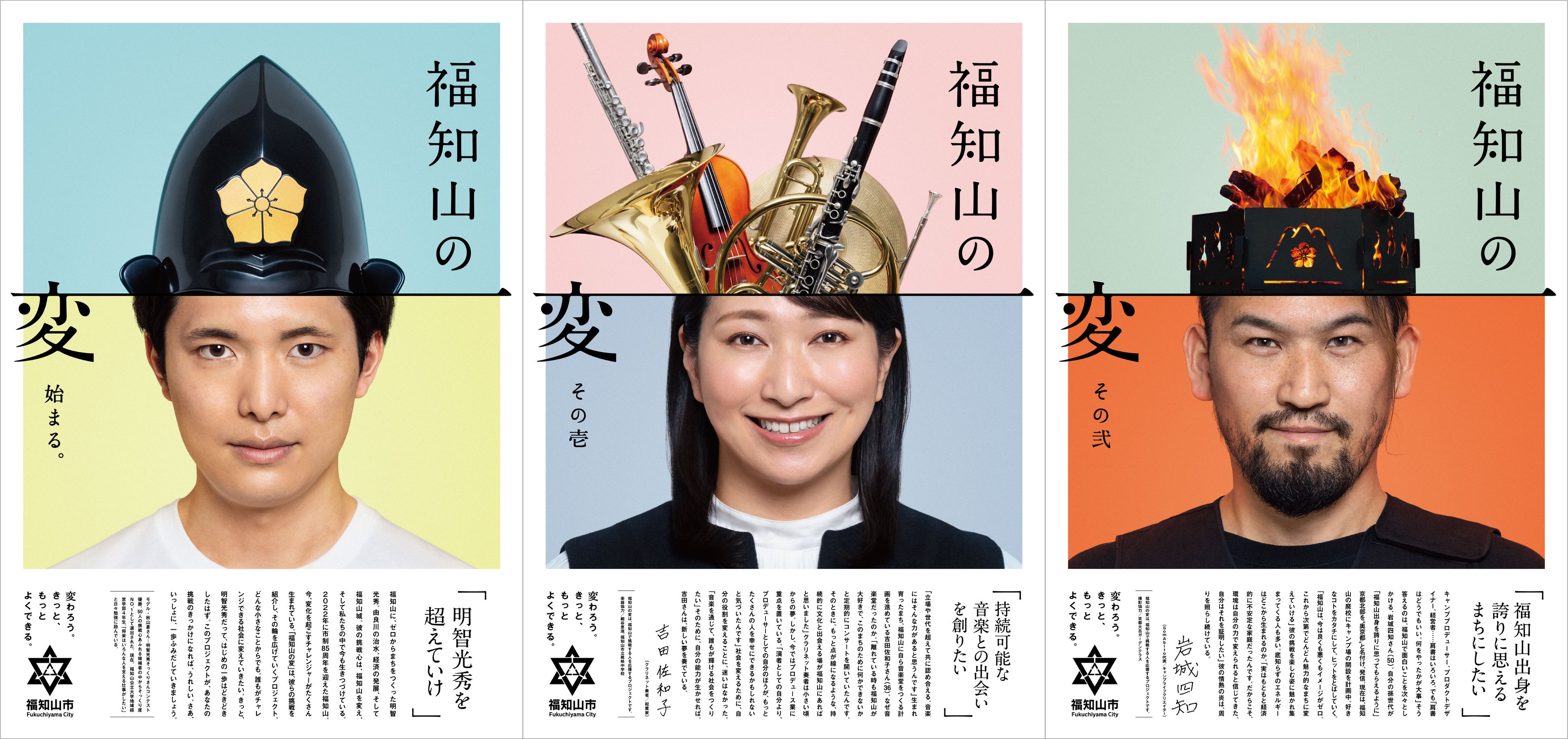 「福知山の変」とは、広告界で活躍する市内外のクリエイターと市役所職員がタッグを組んで、まちの礎を築いた光秀を超えていくような挑戦をし、このまちに変化をもたらす人を紹介する、市民参加型のシリーズ企画です。新聞全面広告やポスターを通じて発信しています。
