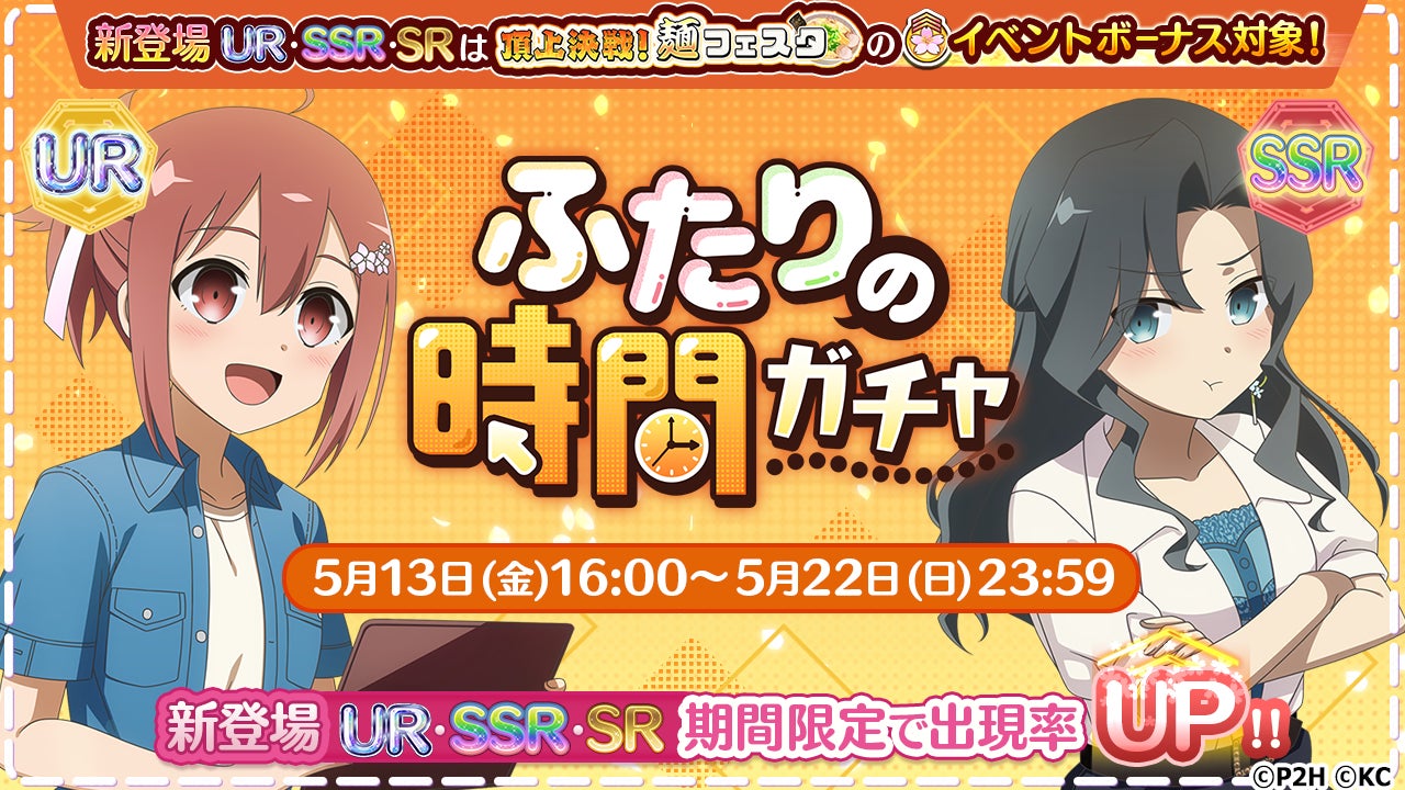 株式会社オルトプラスは、大好評配信中のスマートフォンゲーム・PCブラウザゲーム『結城友奈は勇者である 花結いのきらめき』(略称:ゆゆゆい)において、「ふたりの時間ガチャ」を開催したことをお知らせします。