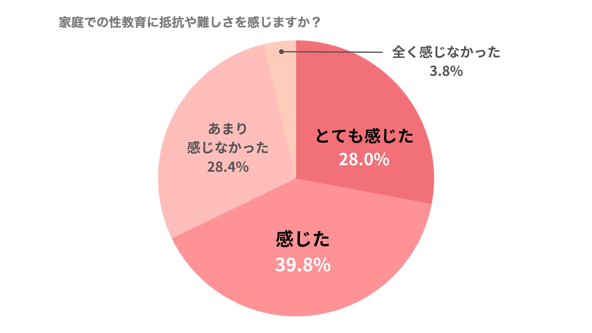「家庭での性教育に抵抗や難しさを感じますか?」という設問では、「とても感じた(28.0%)」「感じた(39.8%)」が7割近くを占める結果に。