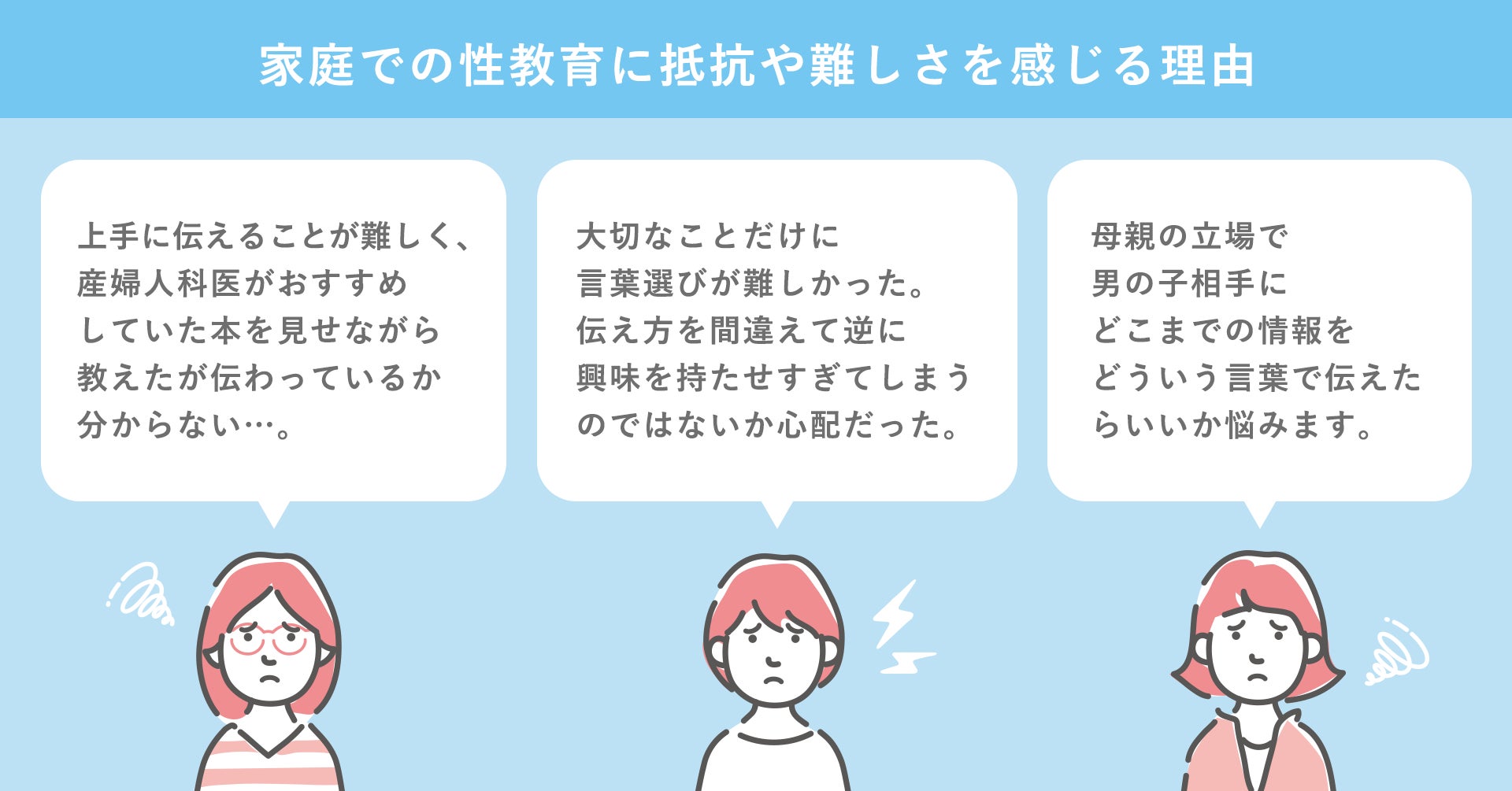 ・性教育は親の役目と思いながら、やはり教えづらさを感じます。SNSやインターネットで誤った知識を得てしまうのも怖いです。