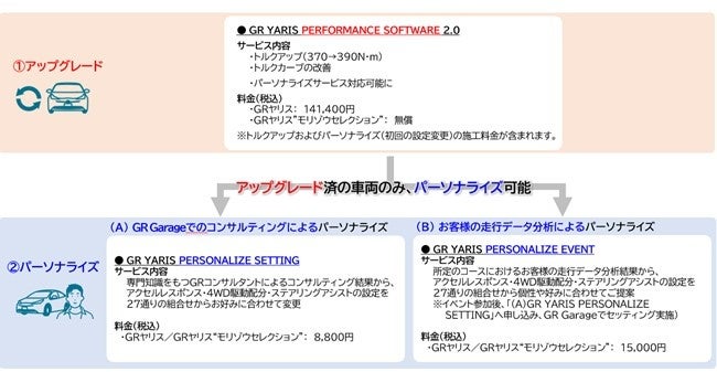 さらに、同サービスをご購入いただいたお客様に向け、最適なソフトウェアのセッティングをお届けする「パーソナライズ」も提供します。お客様の走行データ分析を通じた既存のご提供方法に加え、新たにGR Garageでのコンサルティングを通じたご提供も可能となり、より手軽に「パーソナライズ」をお楽しみいただけます。